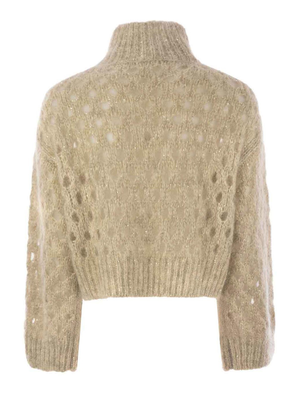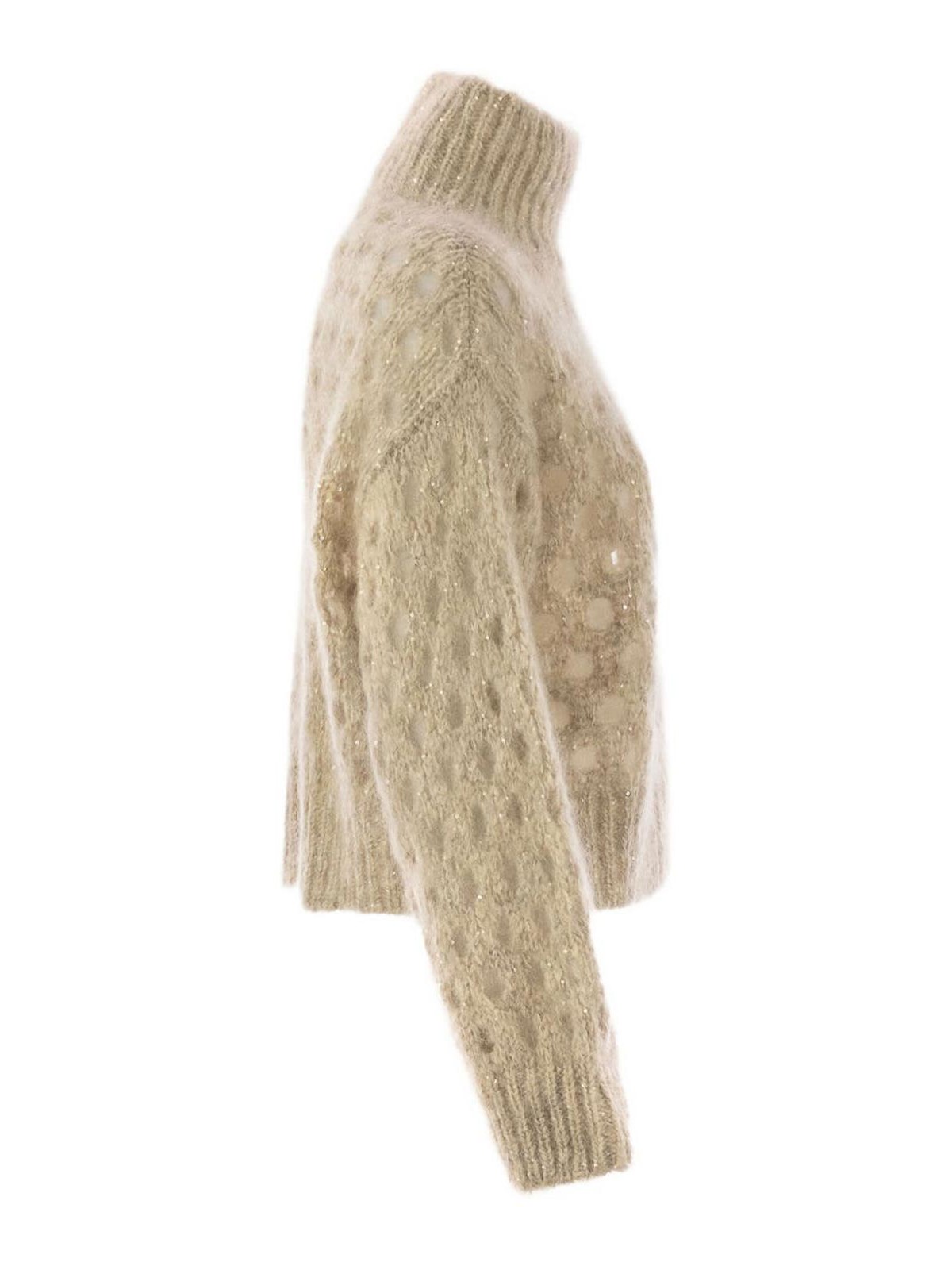 Beige light neck high neck decoration with sequin motifs pierced motif