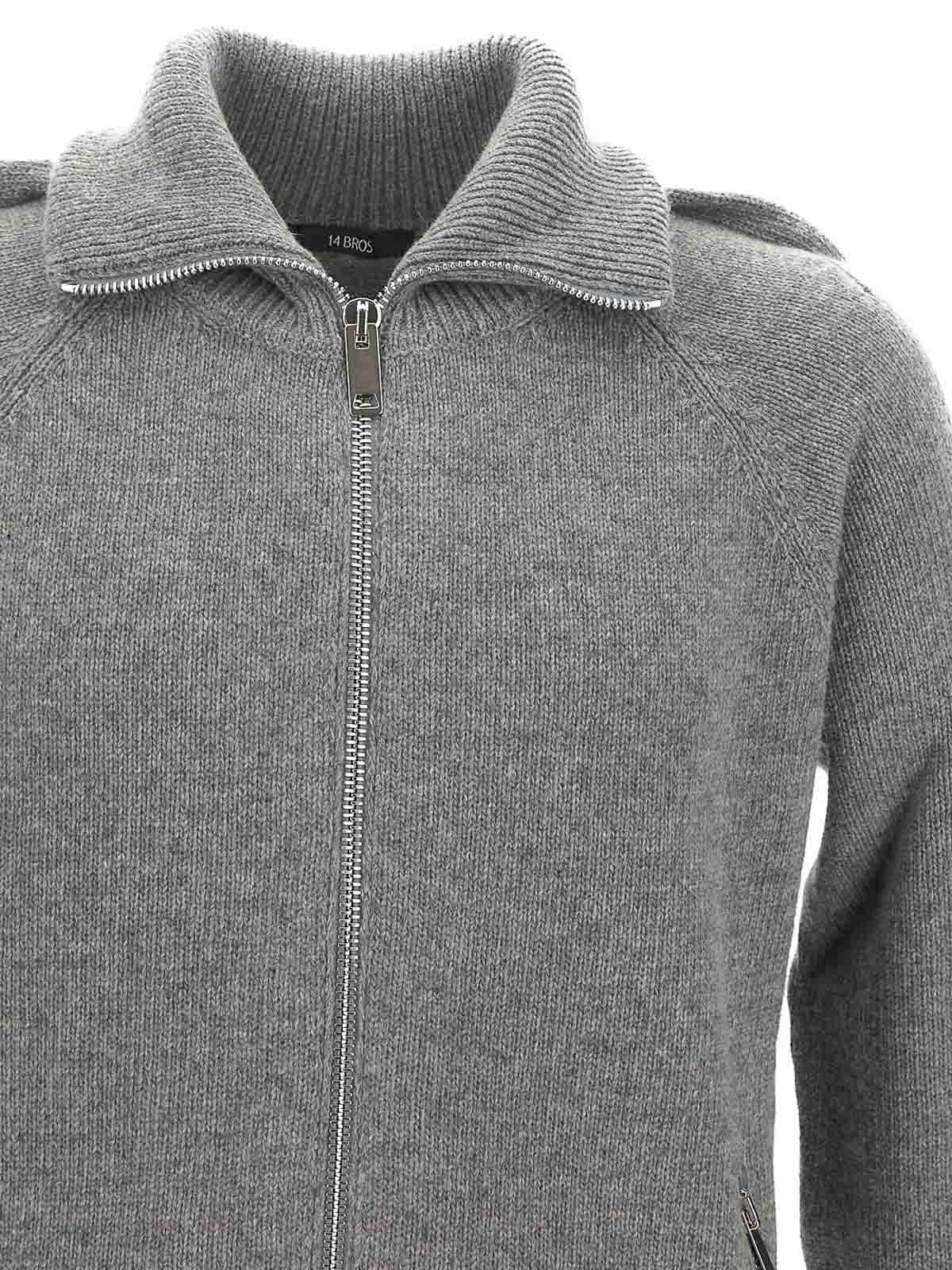 bros knit Sweatshirt in grey with high neck and with zipper