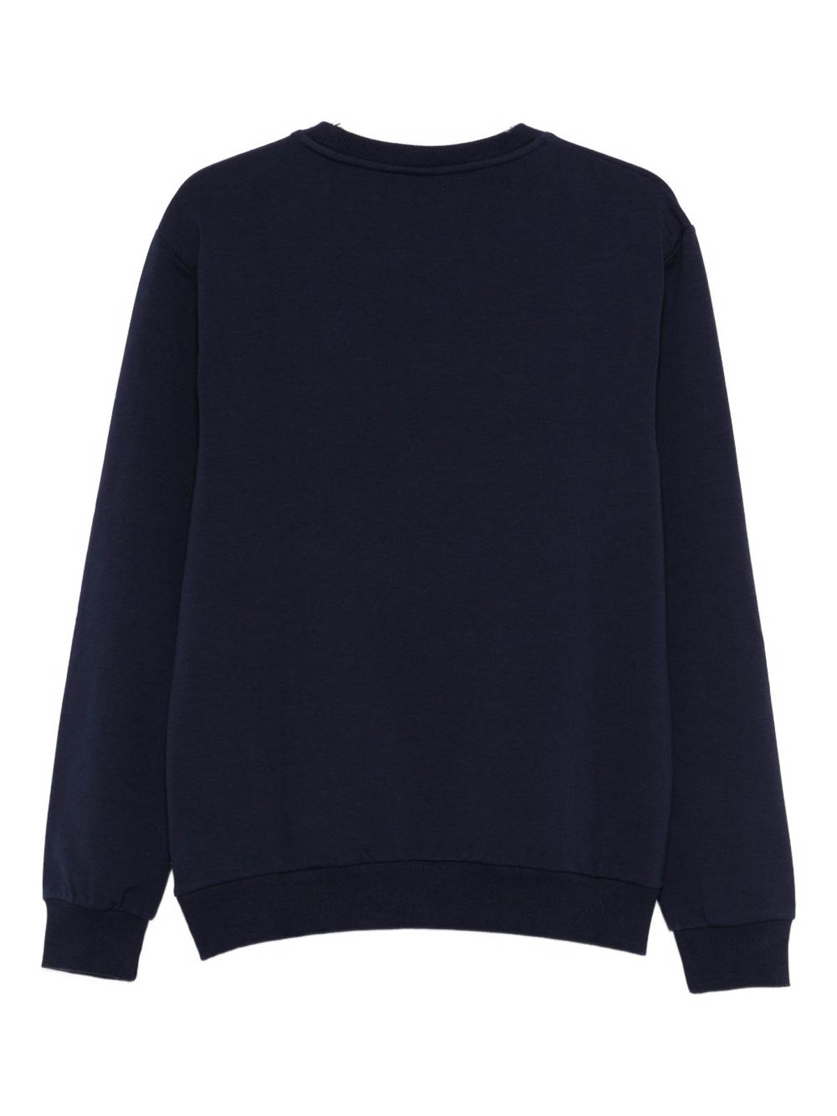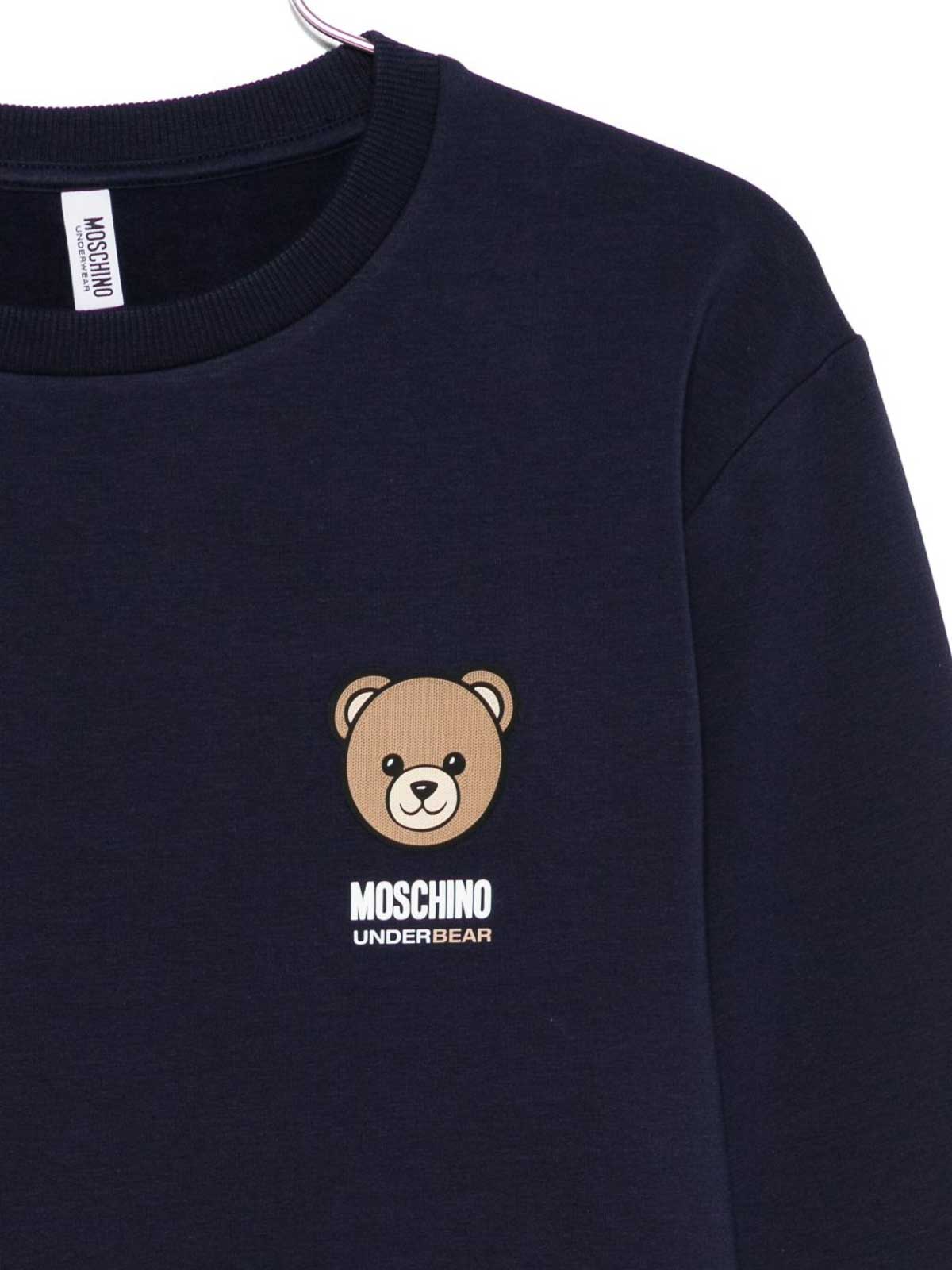 Navy blue crew neck long sleeves ribbed cuffs ribbed hem embroidered teddy bear