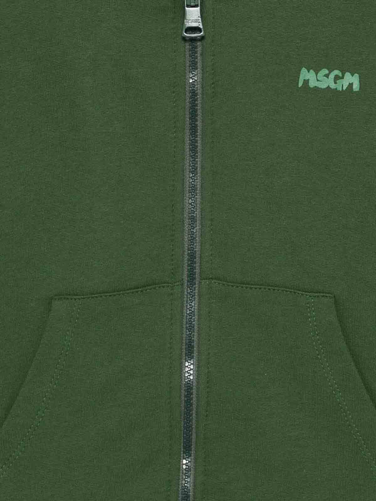 Green hooded neck zip long sleeves kangaroo pocket logo print