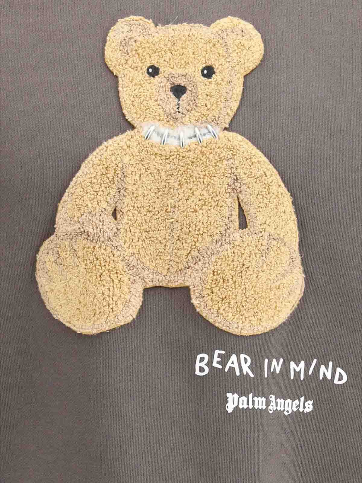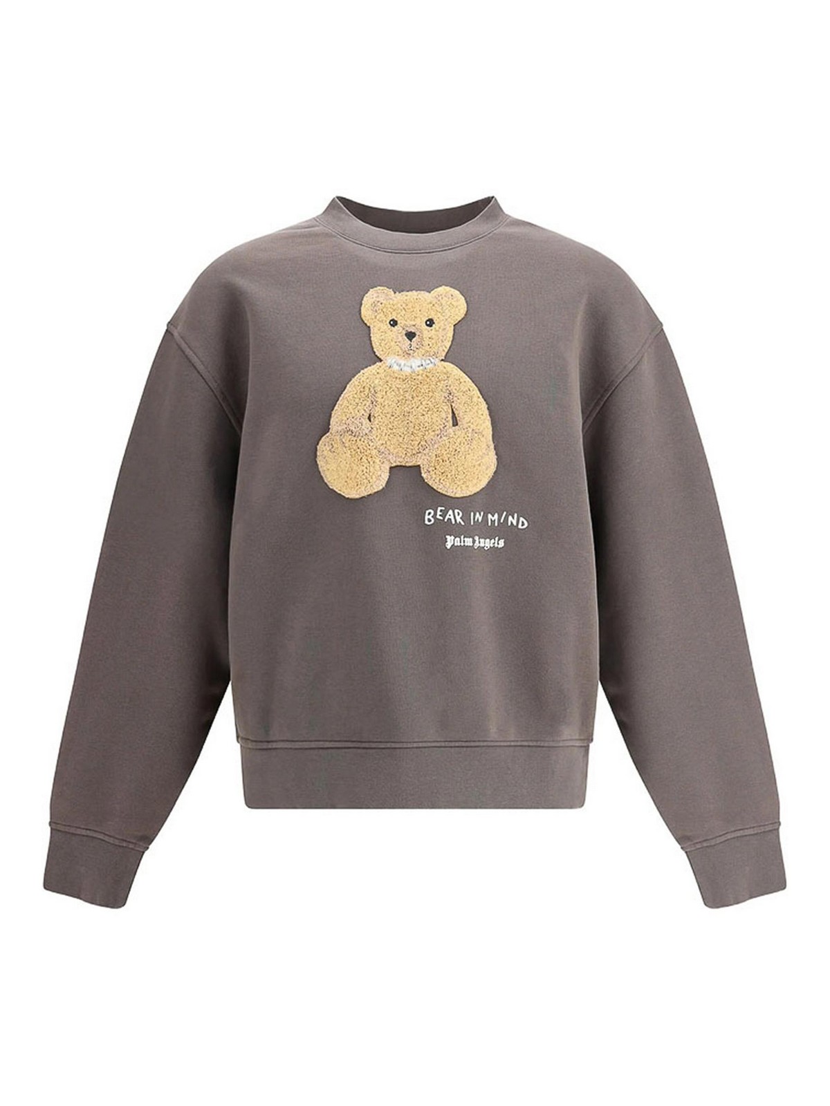 Dark grey teddy bear applique crew neck long sleeves ribbed cuffs