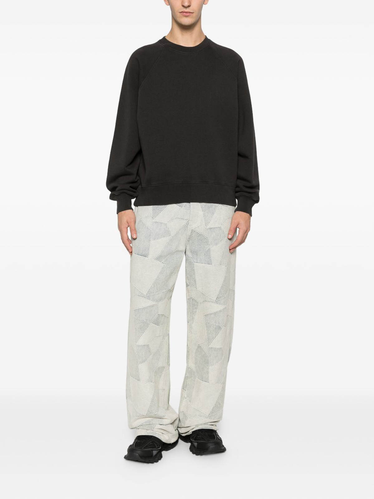 Black crew neck raglan sleeves ribbed hem ribbed cuffs