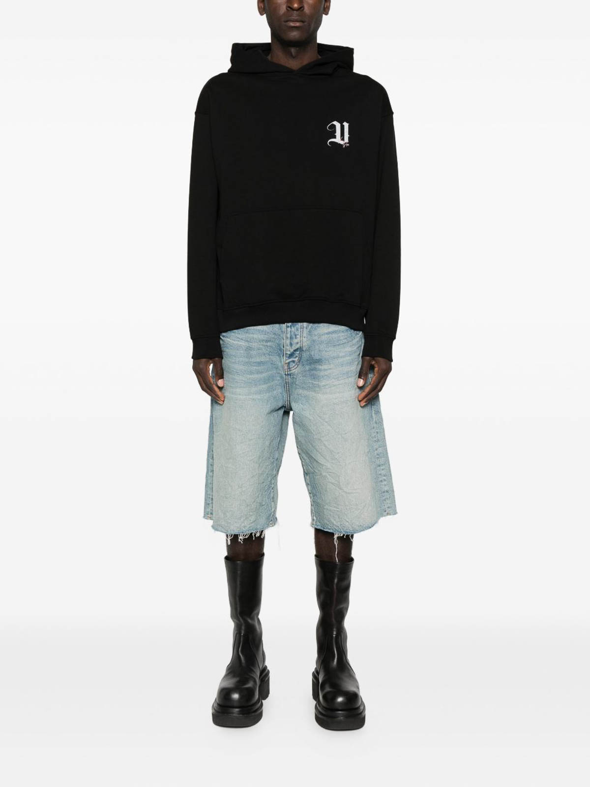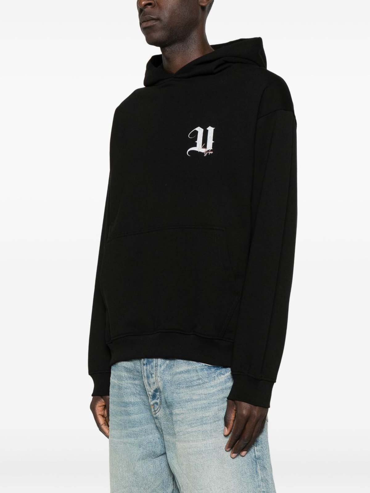 Black graphic print classic hood long sleeves kangaroo pocket ribbed hem