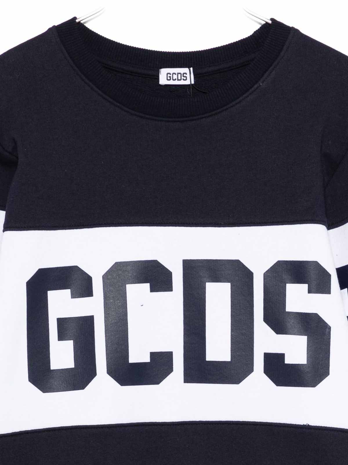 Cotton crewneck sweatshirt characterized by the classic GCDS logo band inlaid and applied on the back and ribbed hems with cuff