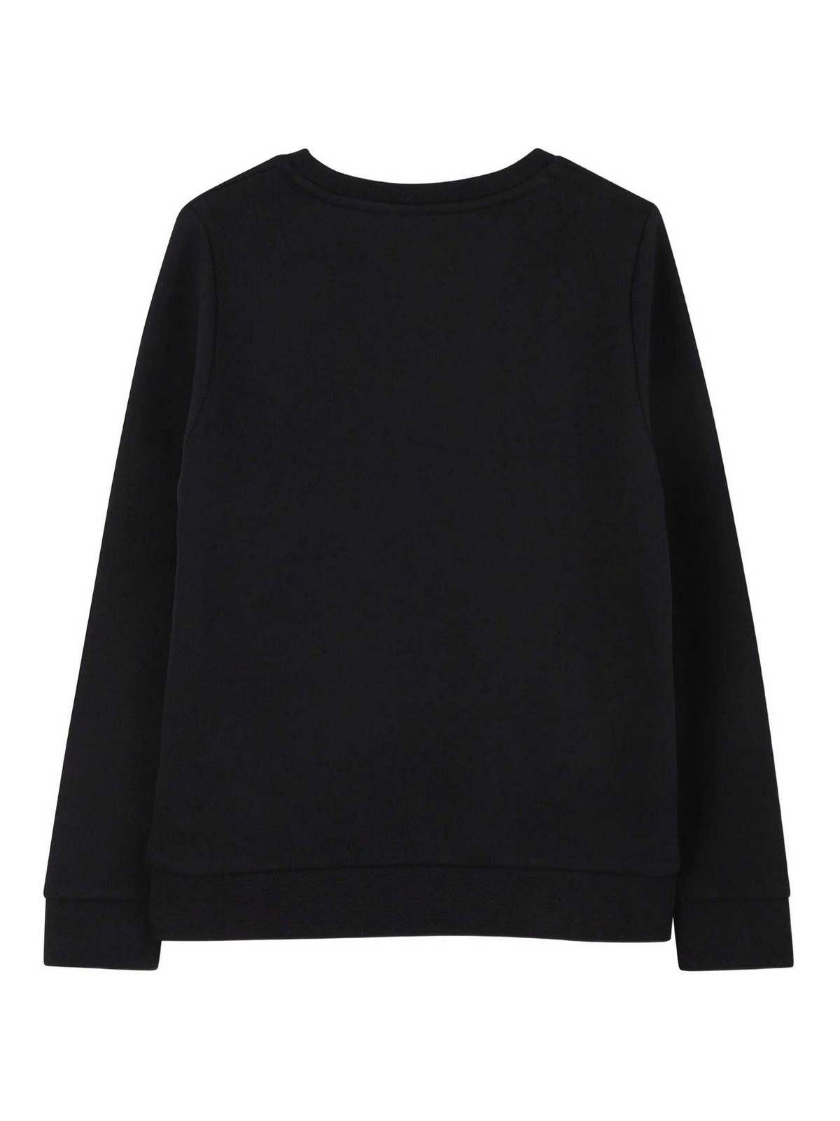 Black print with logo, round neckline, long sleeves