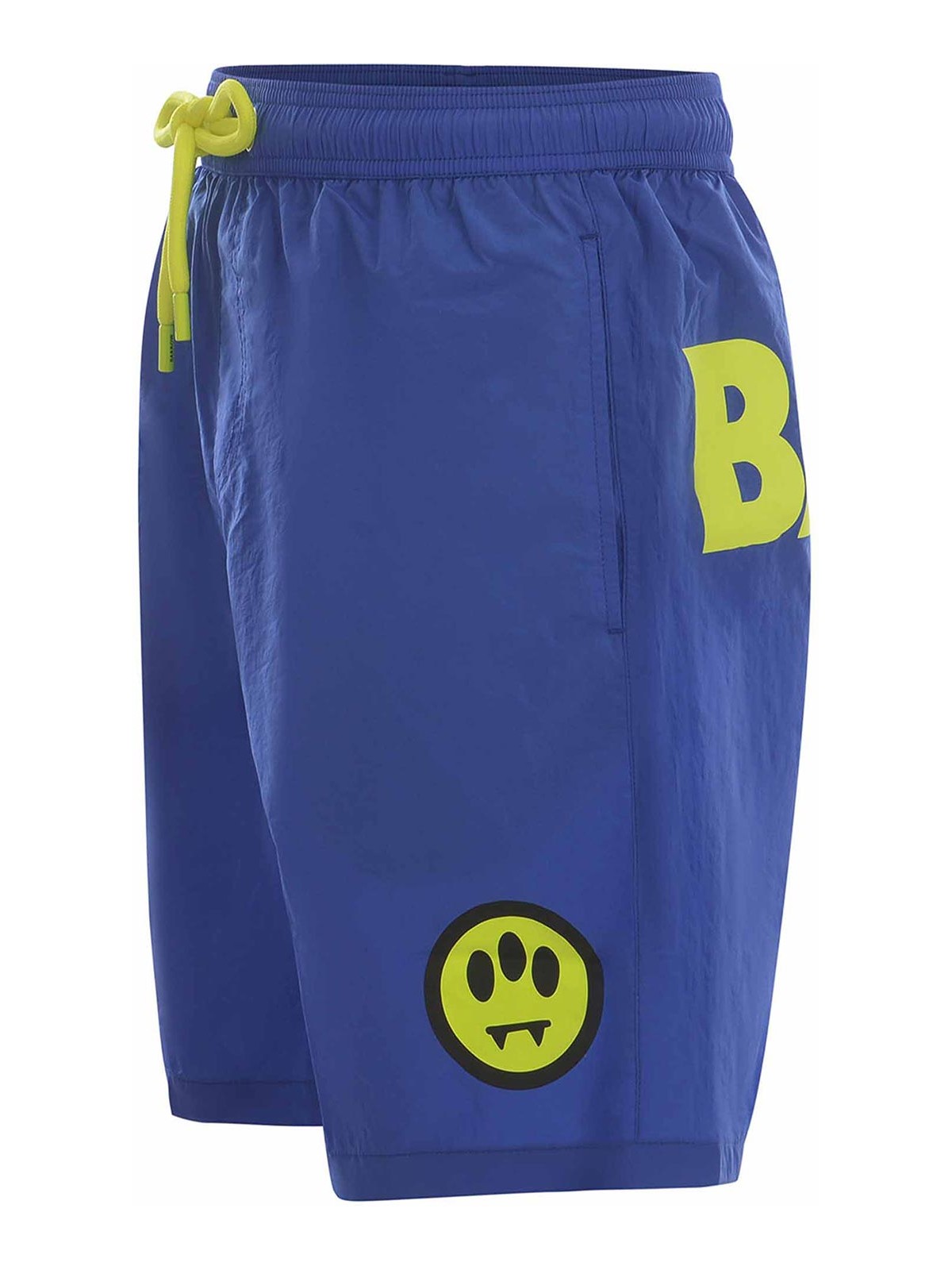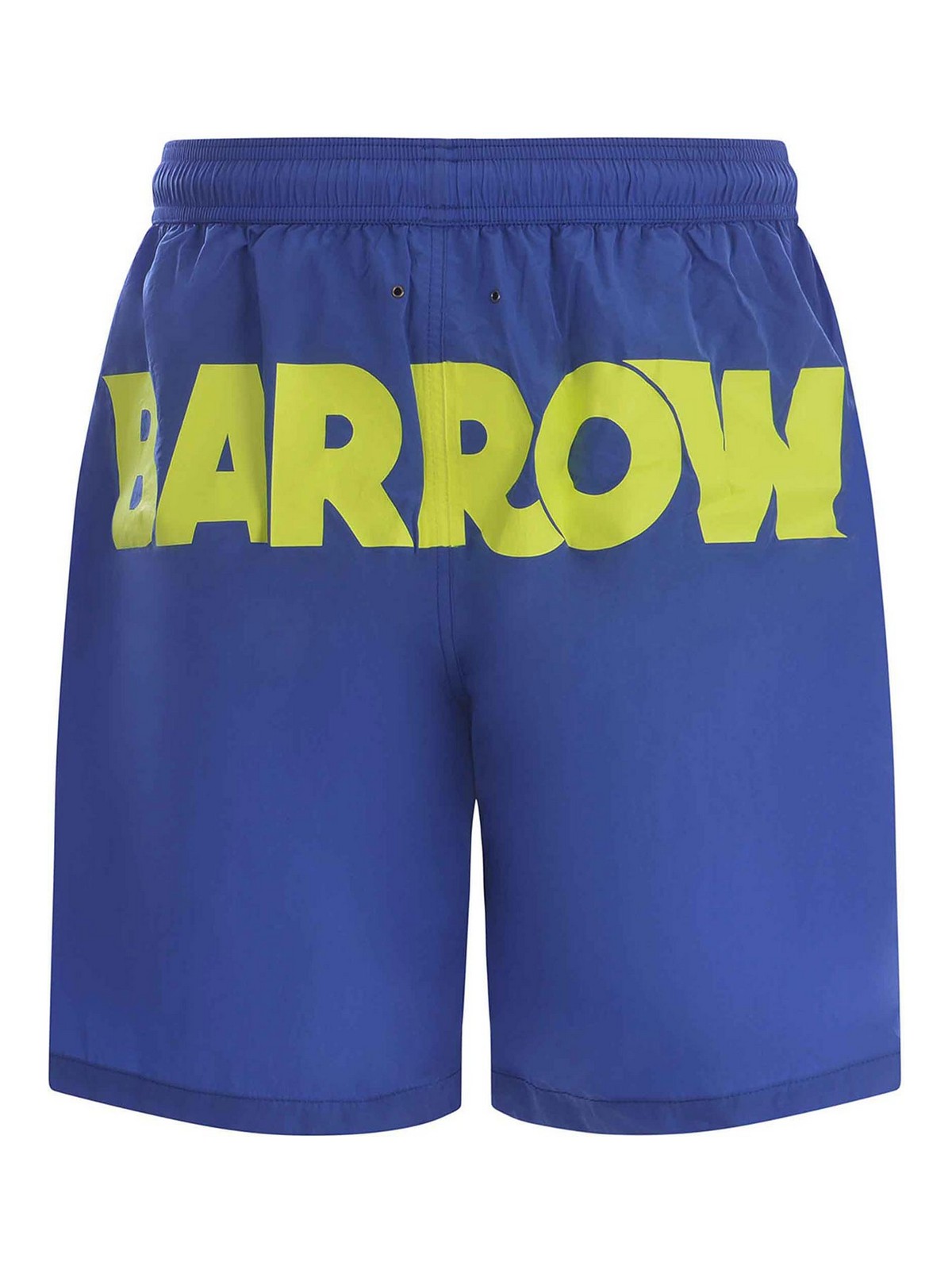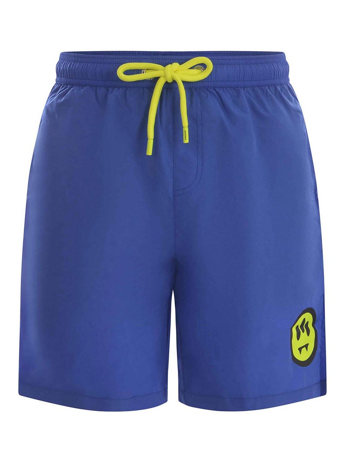 Swimsuit barrow colored elastic waist with contrasting drawstring side pockets smile logo applied on the bottom of the side maxi contrasting barrow lettering logo on the back slip