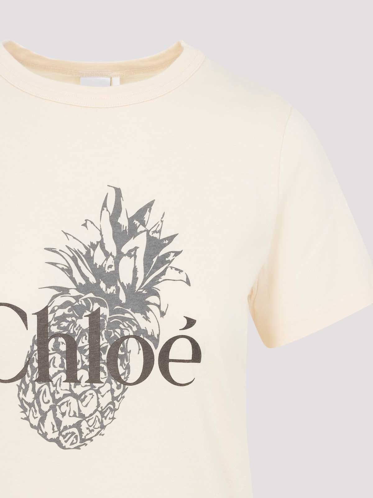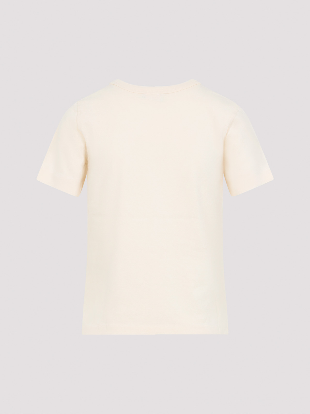 Chloe tender peach beige T-shirt pure tender peach beige T-shirt round neck contrasting grey design short sleeves straight hem tonal stitching