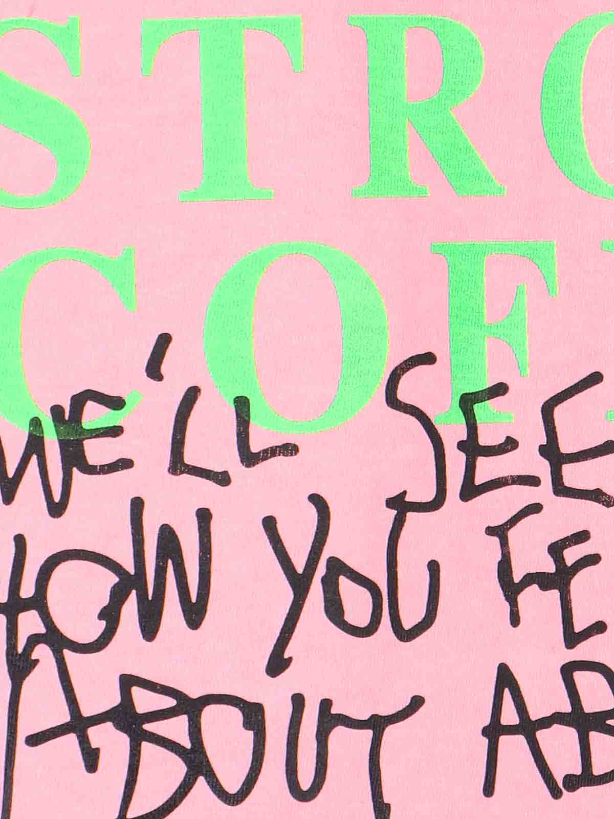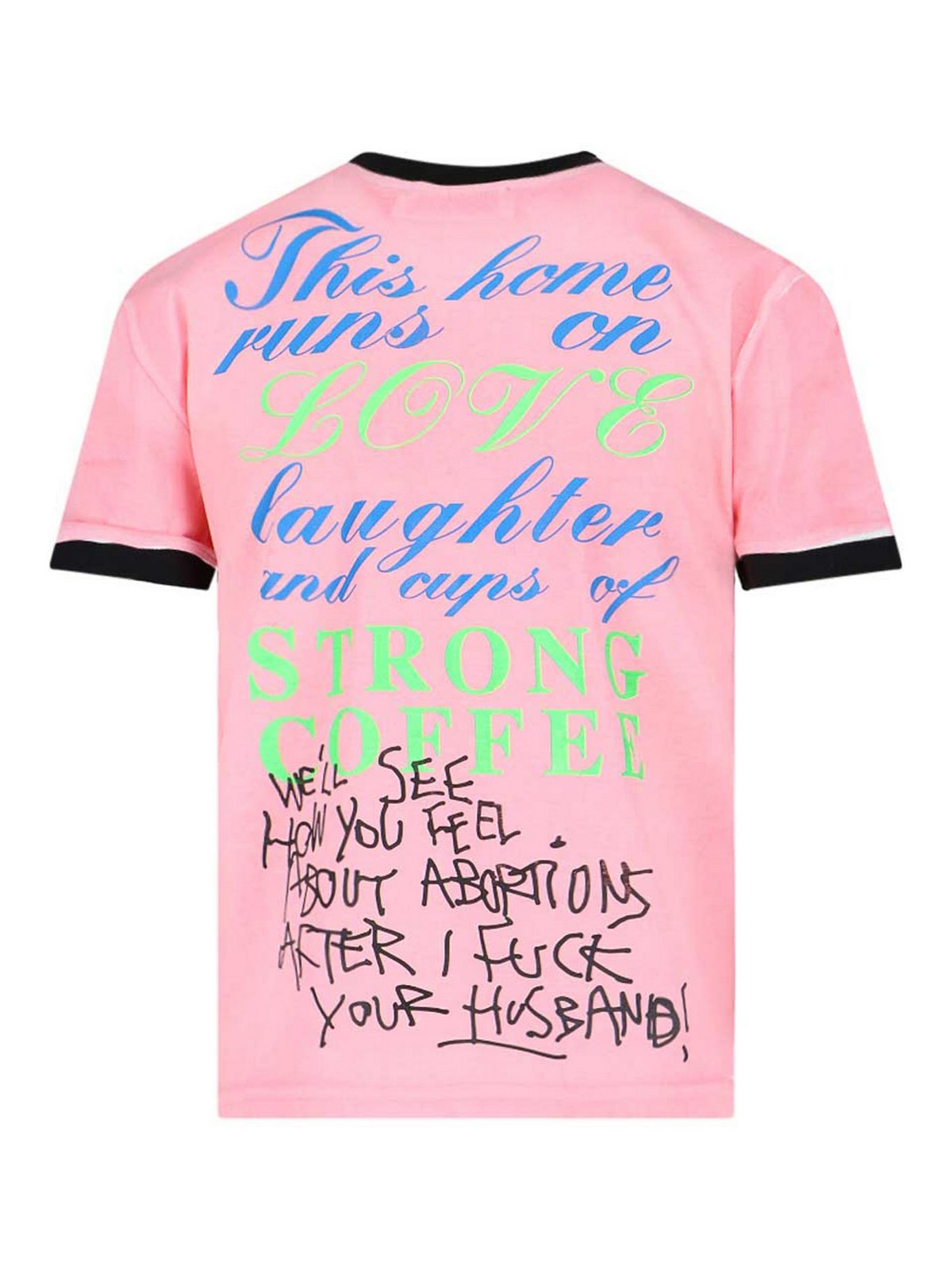 T-shirt fairy godmother cormio pink round neck short sleeves blue neck and sleeves front multicolor logo print maxi multicolor lettering print straight hem back