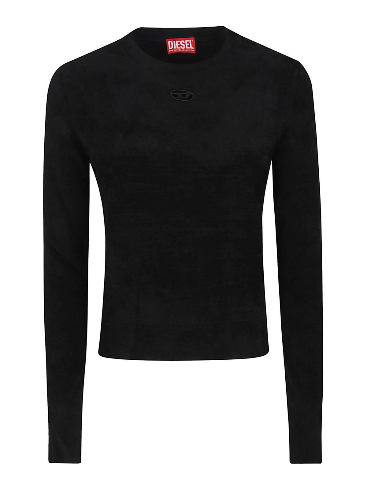 Soft and comfortable Diesel chenille sweatshirt, crew neck, long sleeves, featuring a cut-out embroidery of the iconic oval D logo under the neckline.