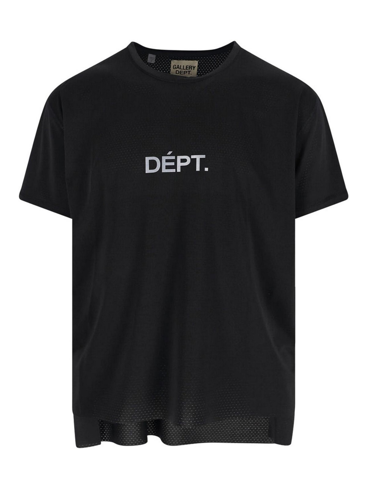 Gallery dept. logo t-shirt in black technical fabric, crew neck, short sleeves, contrasting logo print on the front, ribbed finishes, straight hem.