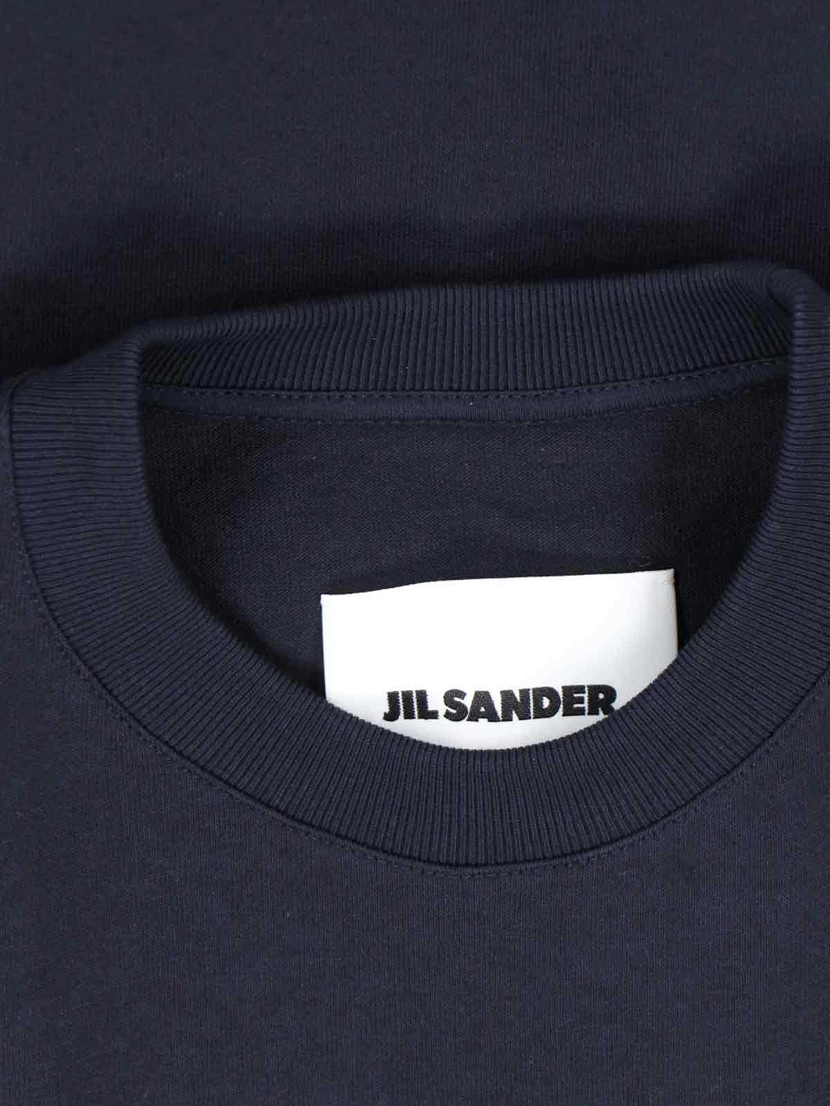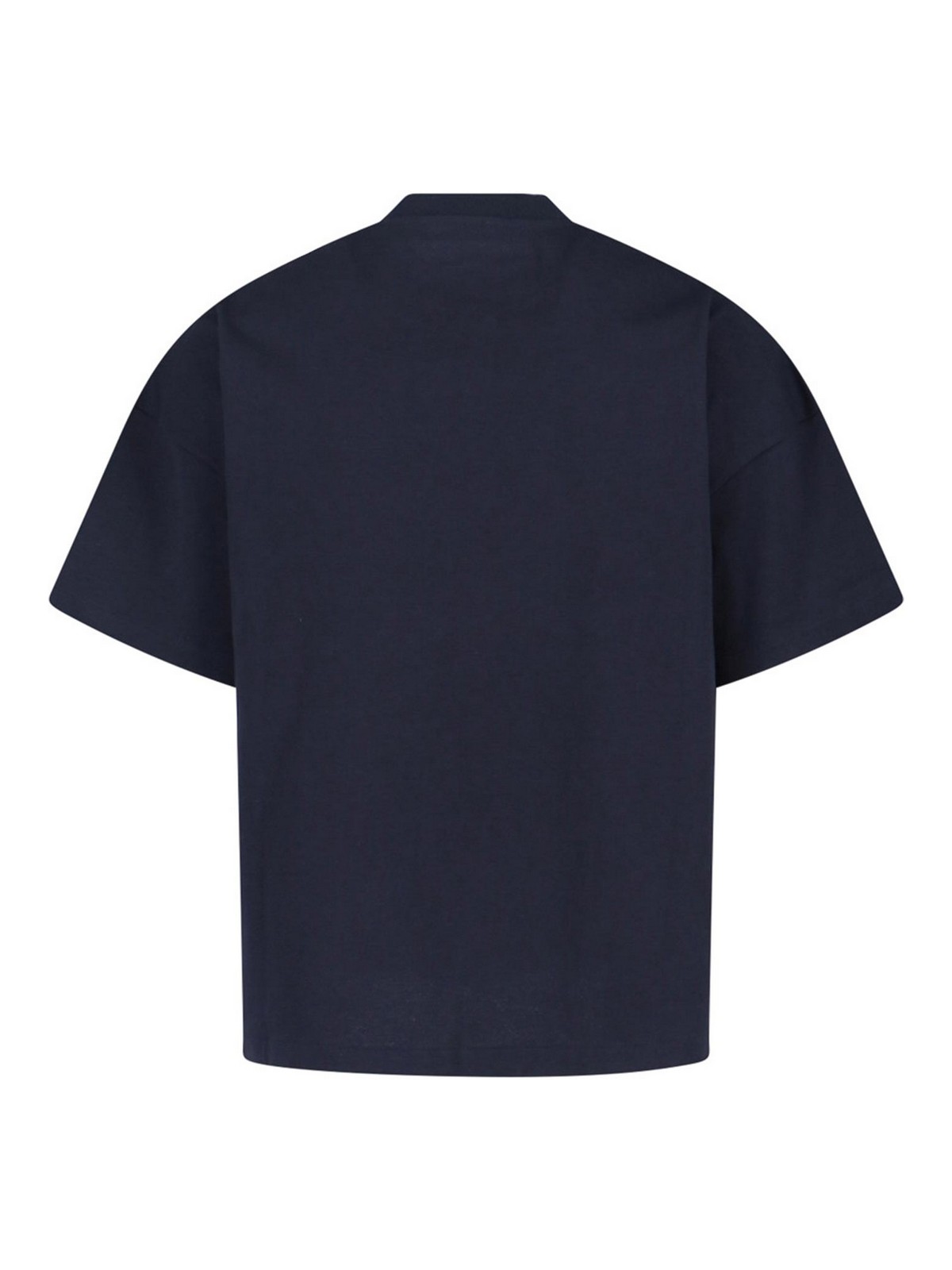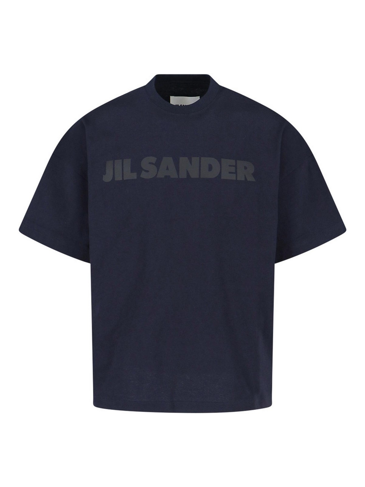 Jil Sander logo T-shirt in blue cotton, crew neck, short sleeves, dropped shoulders, front logo print, ribbed finishes, straight hem.
