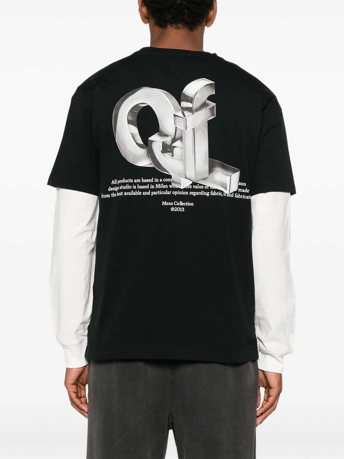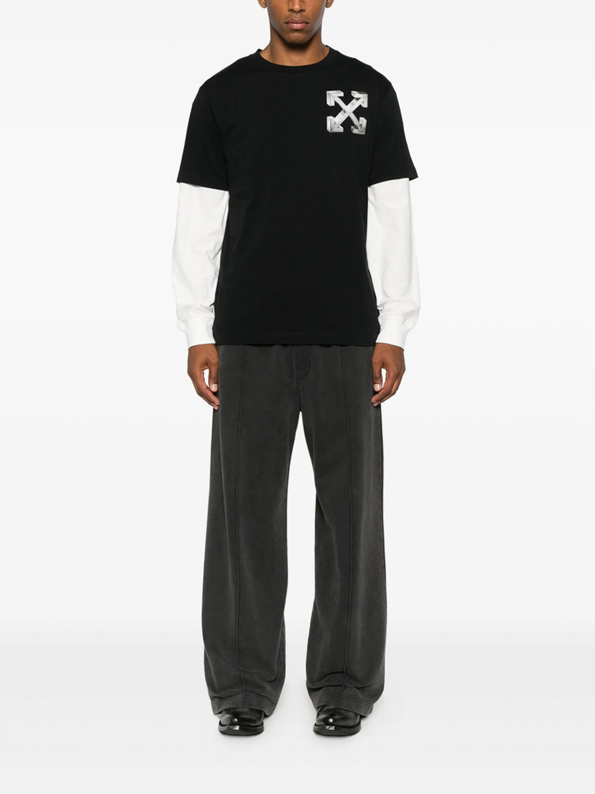 Black short sleeves crew neck signature arrows motif straight hem