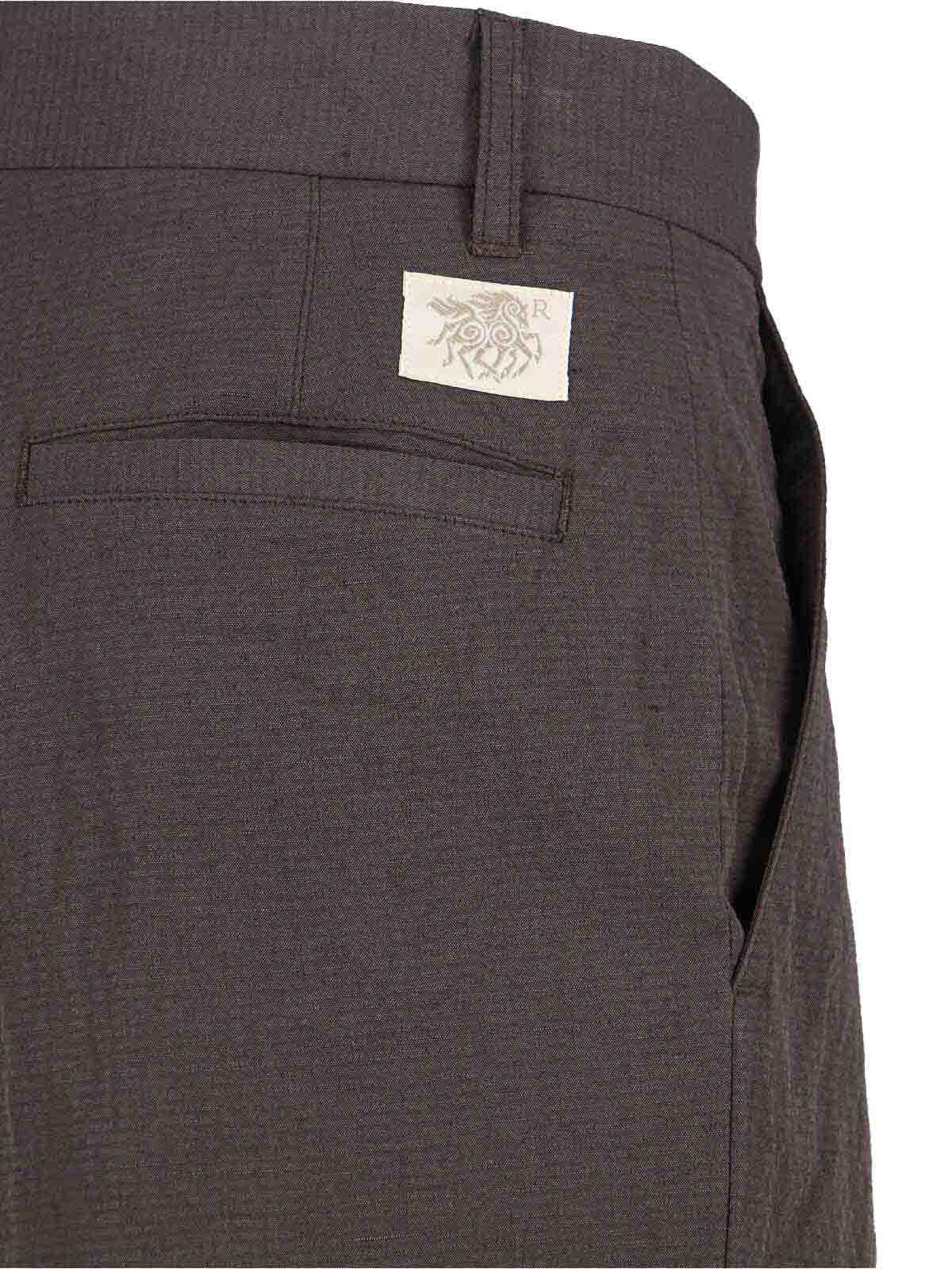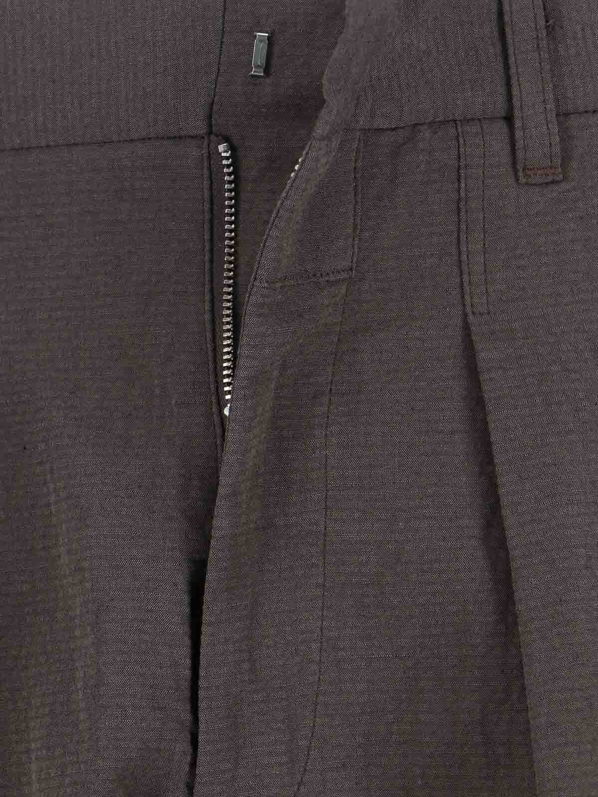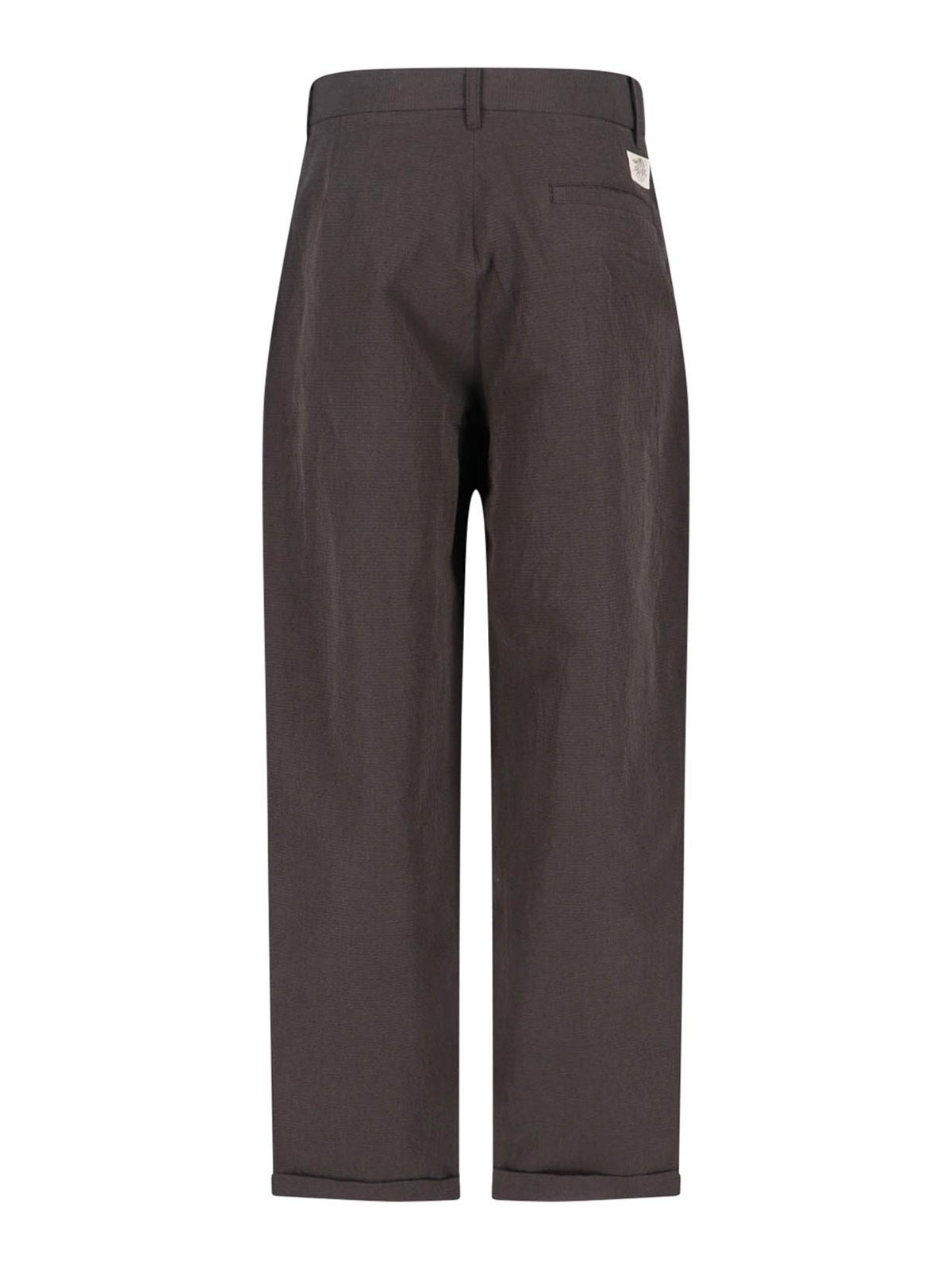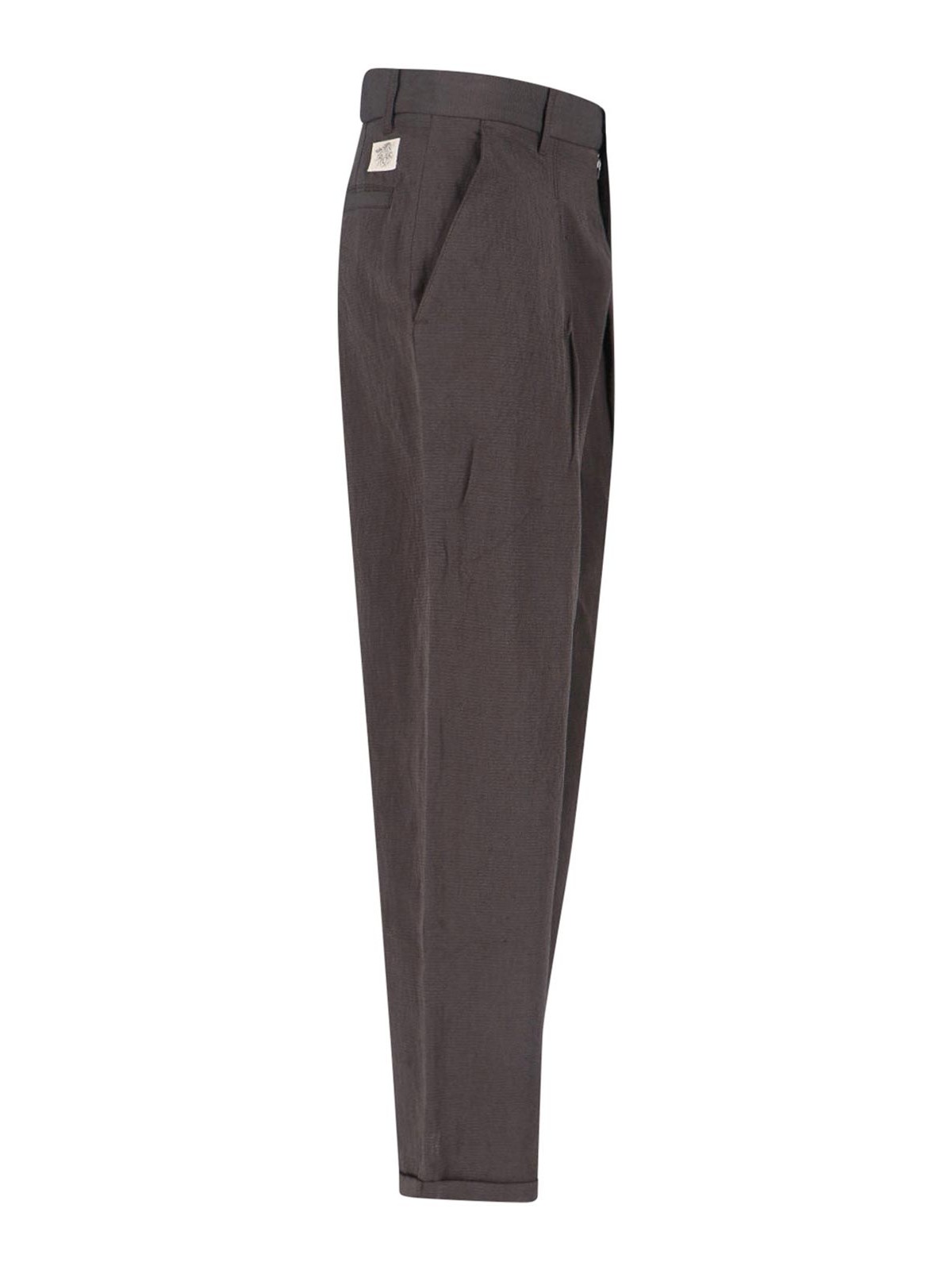 Ranra tailored trousers in cotton and linen blend, high waist, zip and hook closure, belt loops, two side slanted pockets, front pleats, two back welt pockets, rear logo patch, straight leg.
