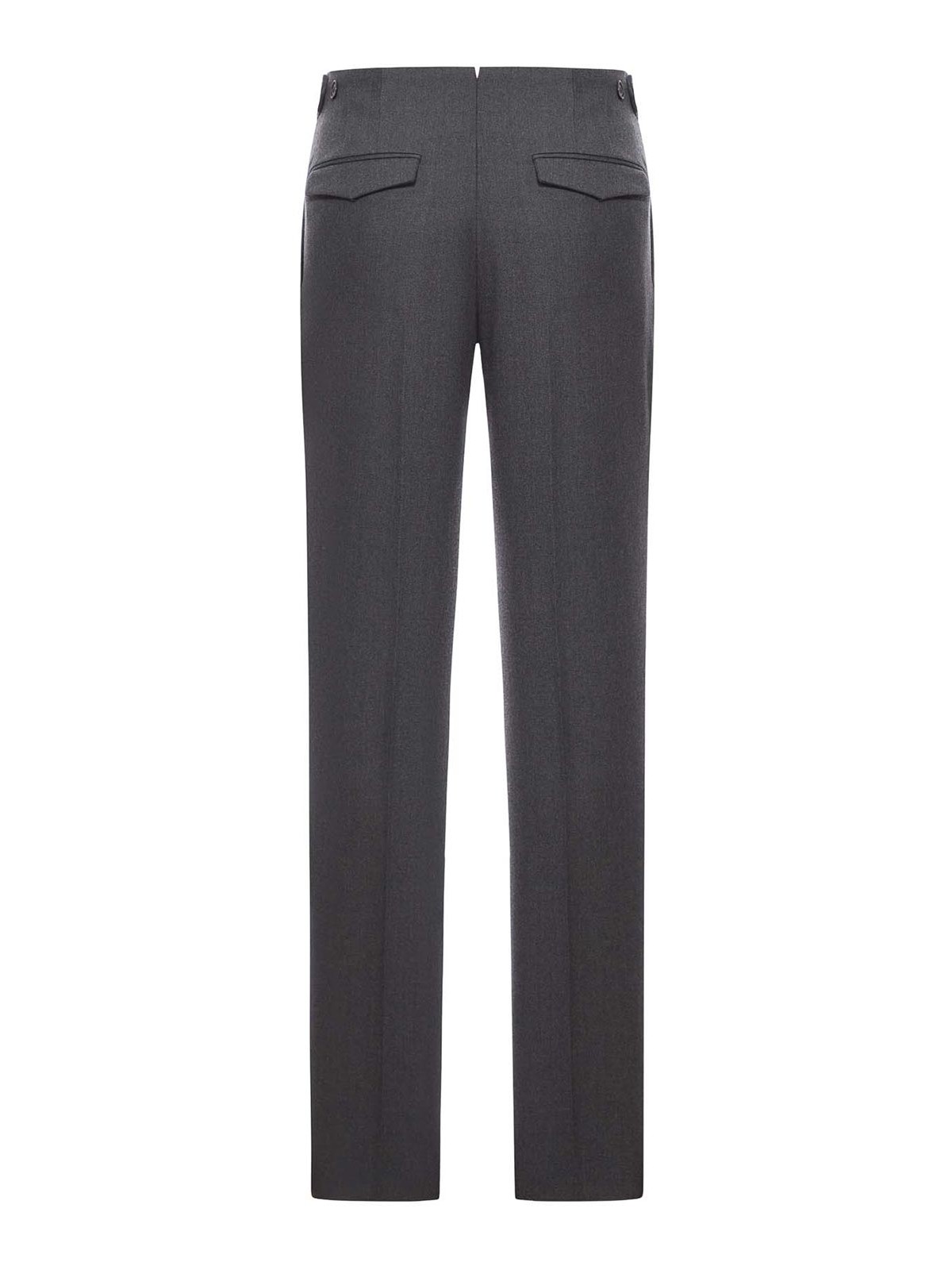 Tailored trousers, straight leg, slant pockets, zip and button, double pleats on the, two welt pockets with flaps on the back, - grey