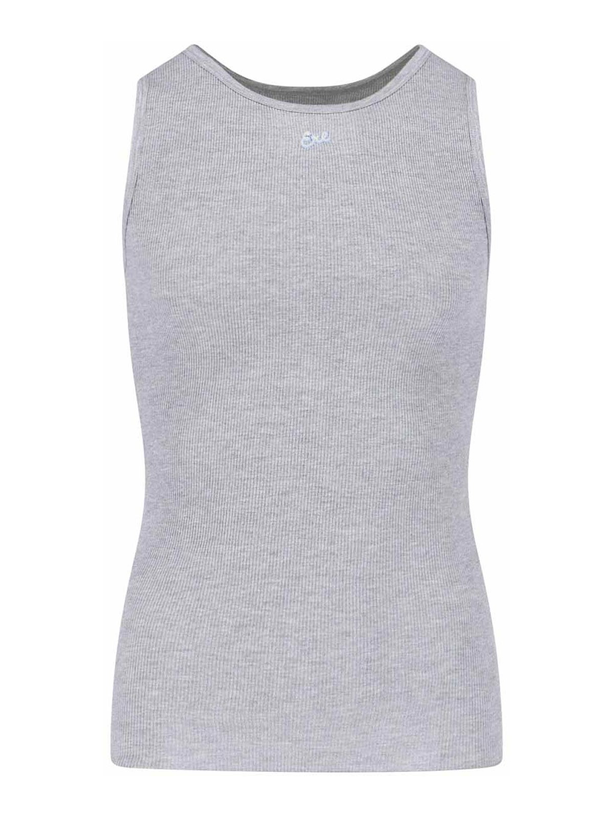 Erl logo tank top in gray cotton blend, crew neck, sleeveless, embroidered logo on the front, straight hem.