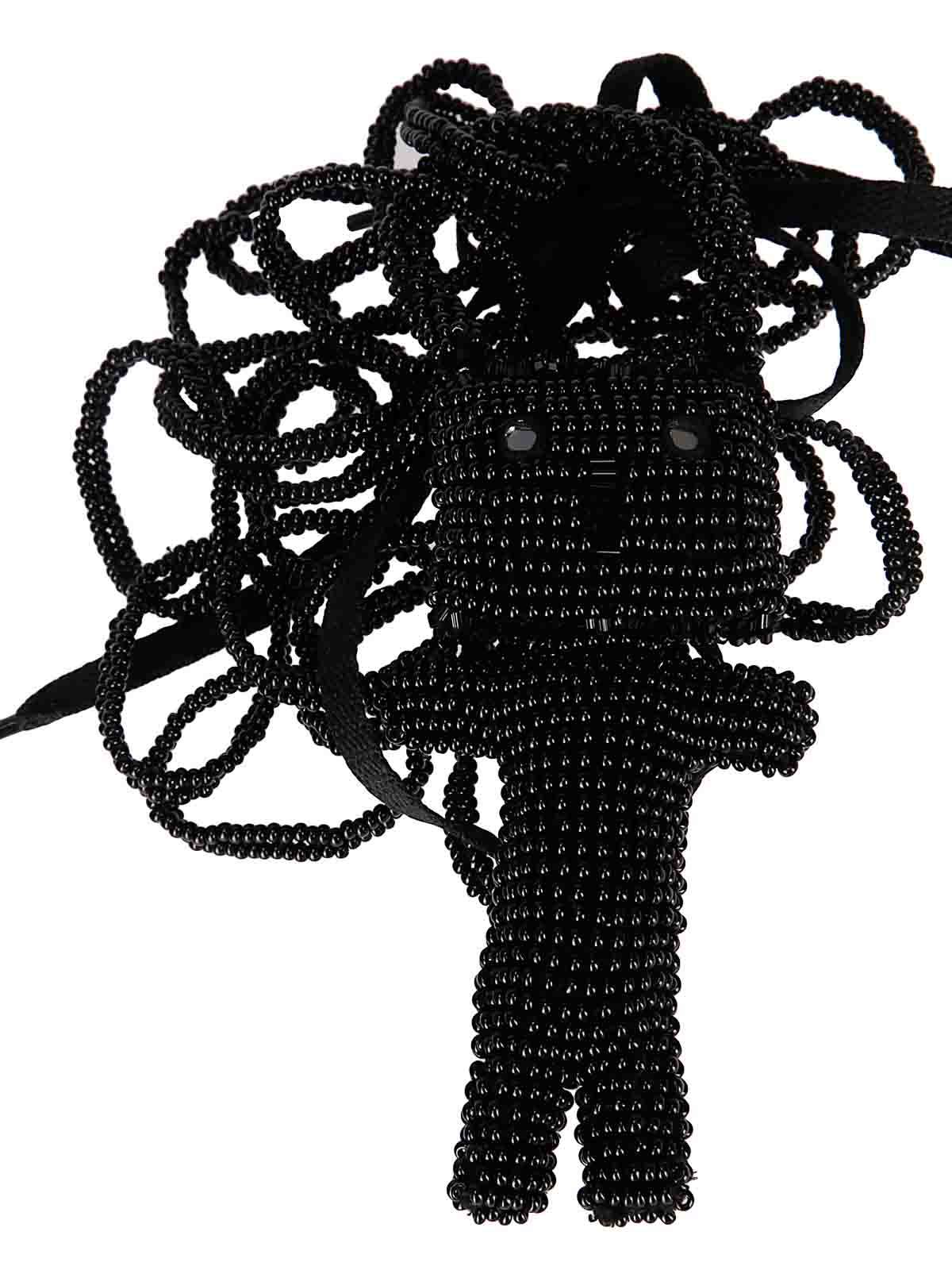 Tea chain necklace with robot pendant beads, micro sphere chain, ribbon detail.
