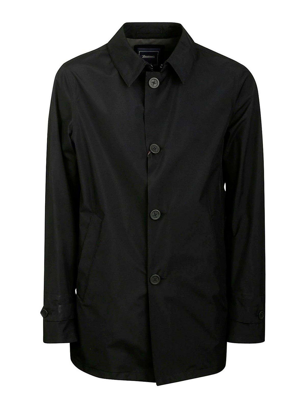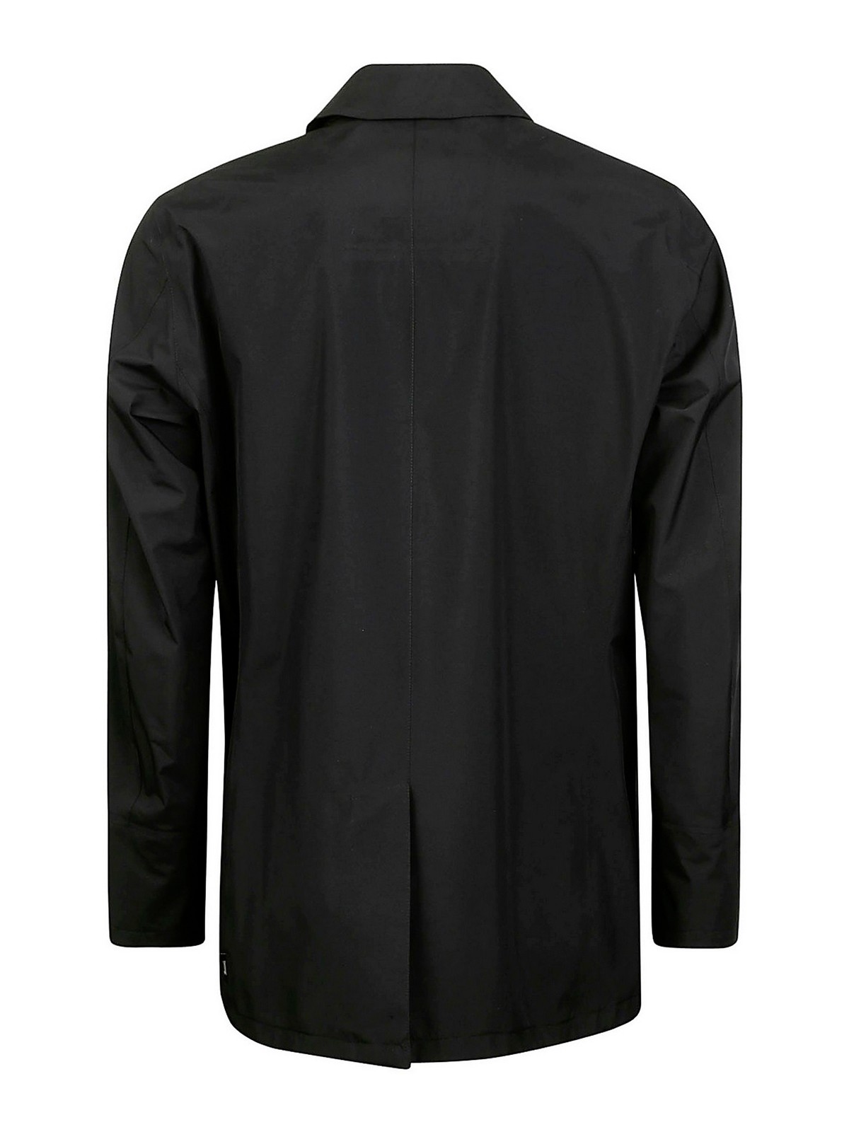 Black raincoat, with button closure and central vent in the back. windproof cuffs, made with gore-tex membrane that offers waterproof protection, as well as breathable and windproof properties.