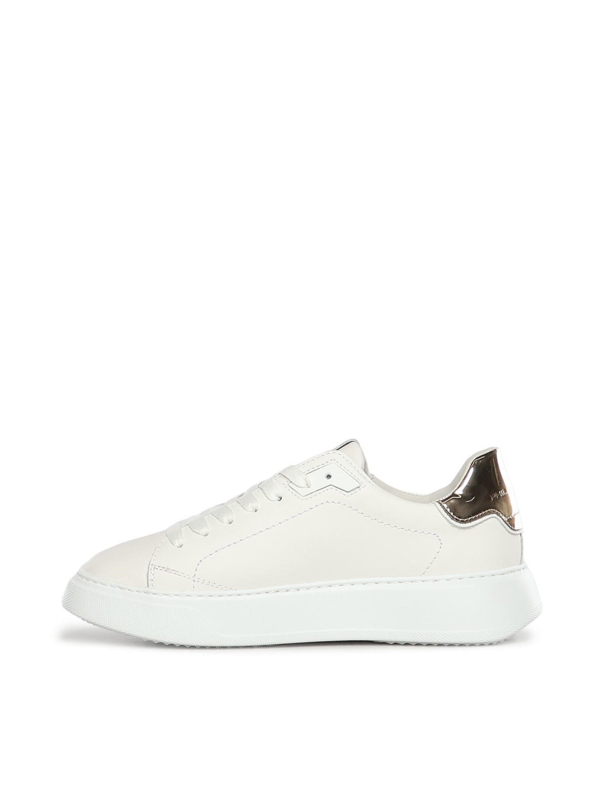 calfskin upper, lace-up closure, round toe, rubber sole, cotton terry lining, logo details, made in italy, designer color: white, gold