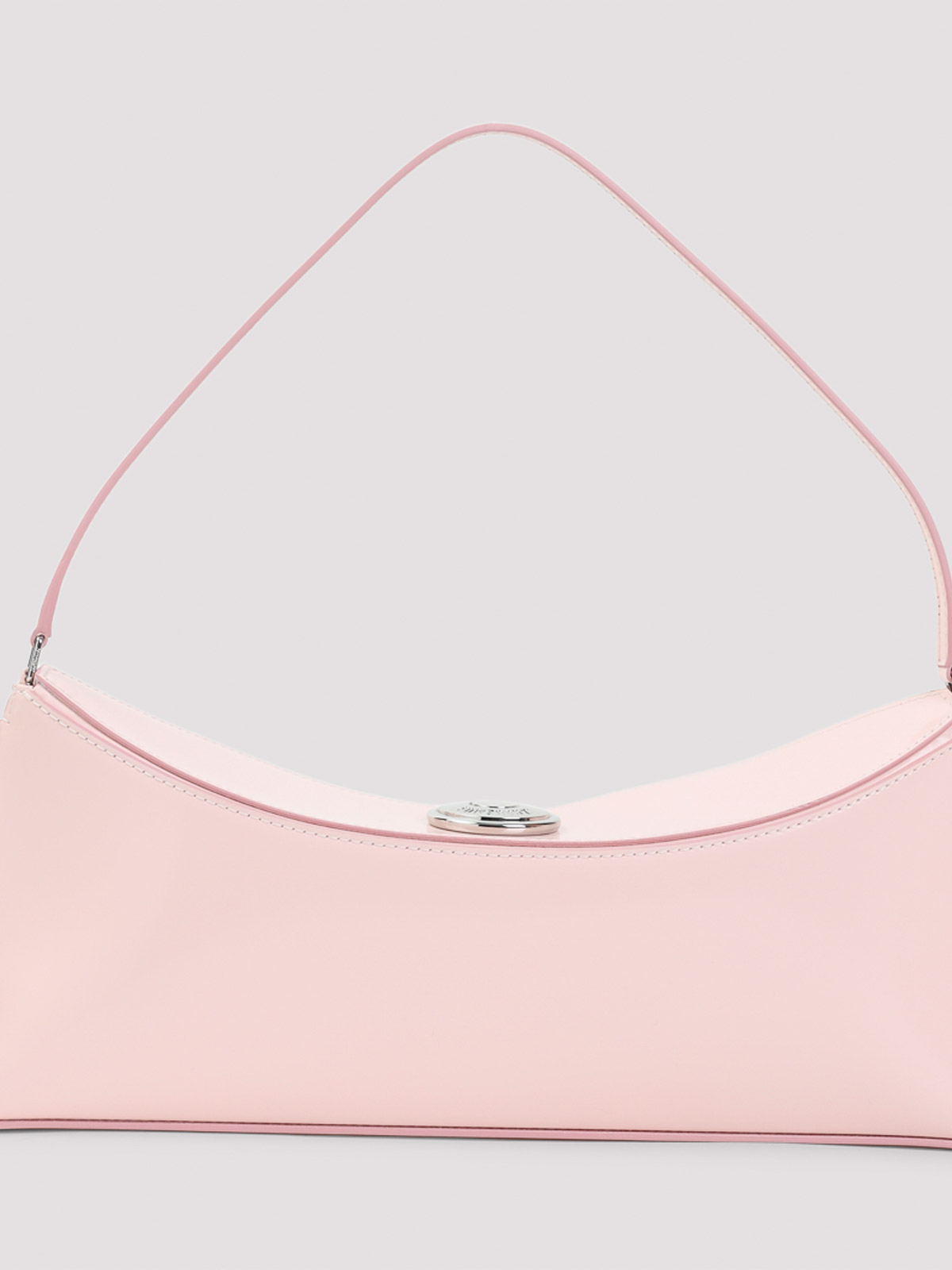 Jacquemus le calisso pink handbag crafted from pink, toned hardware top magnetic snap with engraved detailing interior card slot