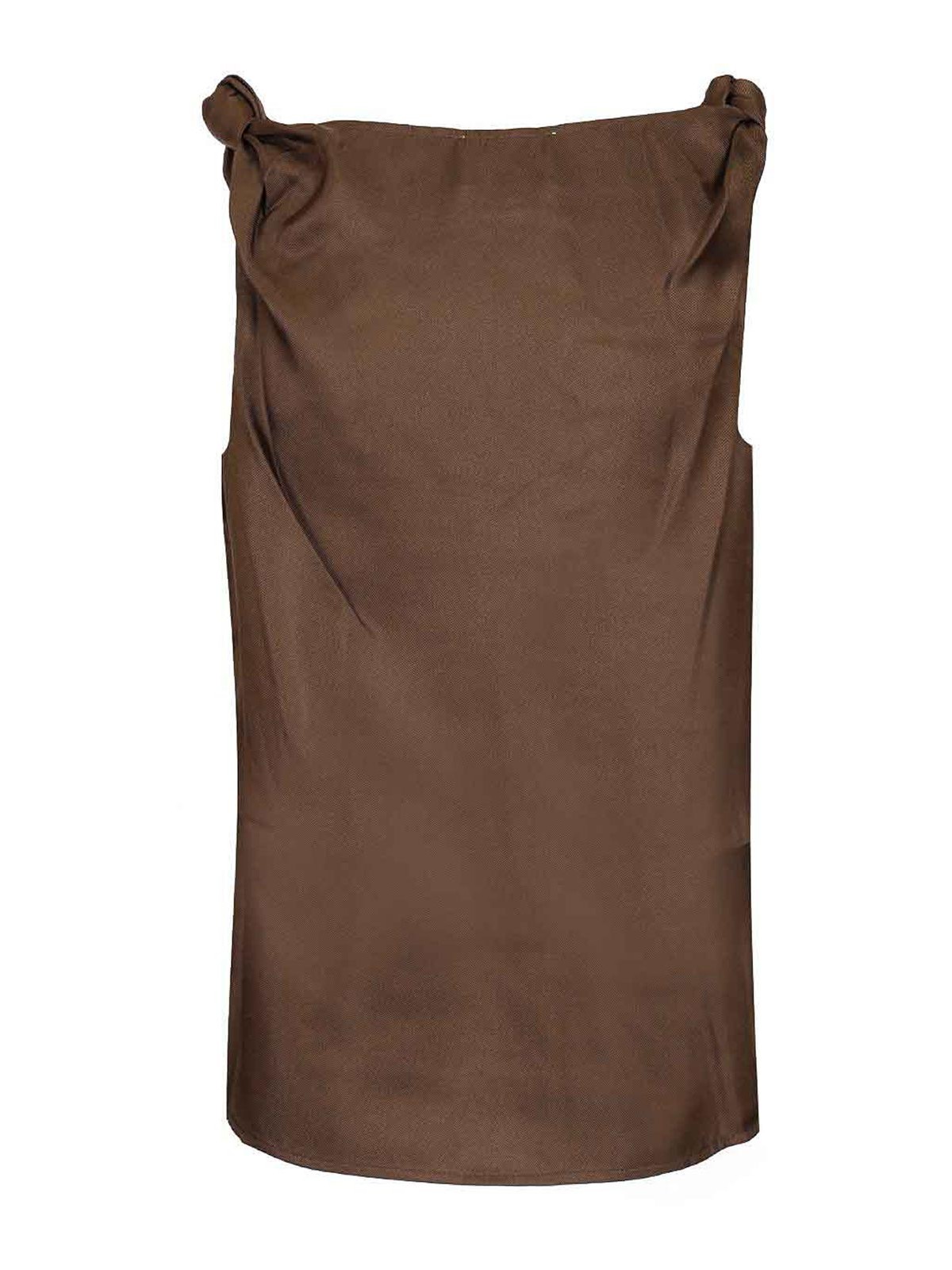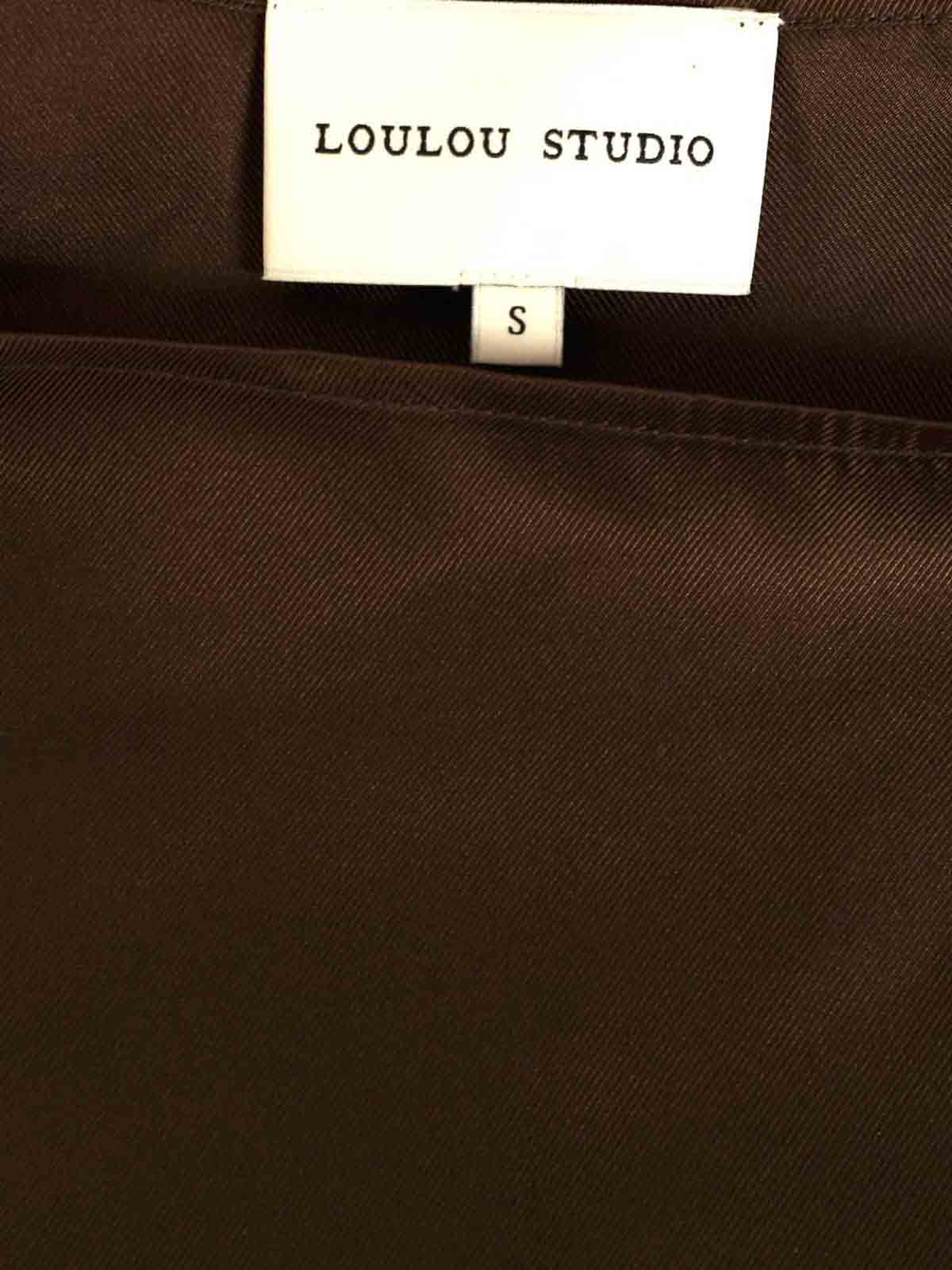 Loulou studio remy silk twill top with draped and knotted shoulder detail and wide boat neckline