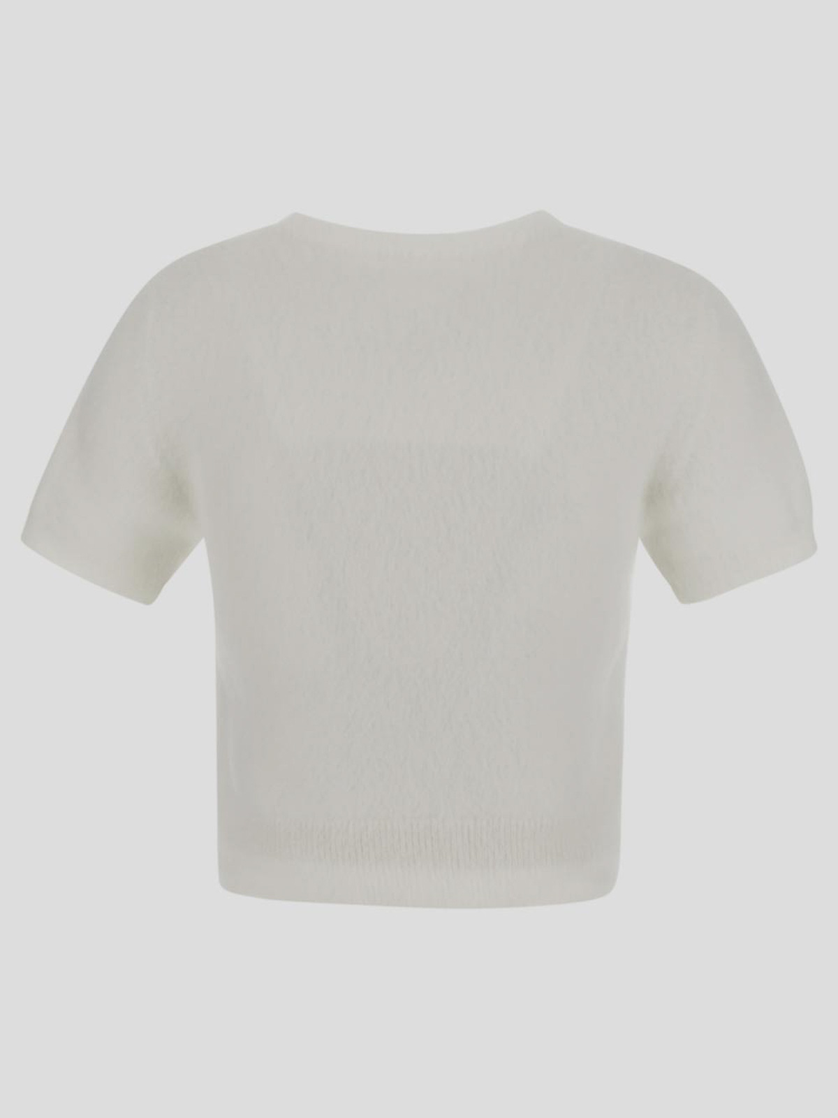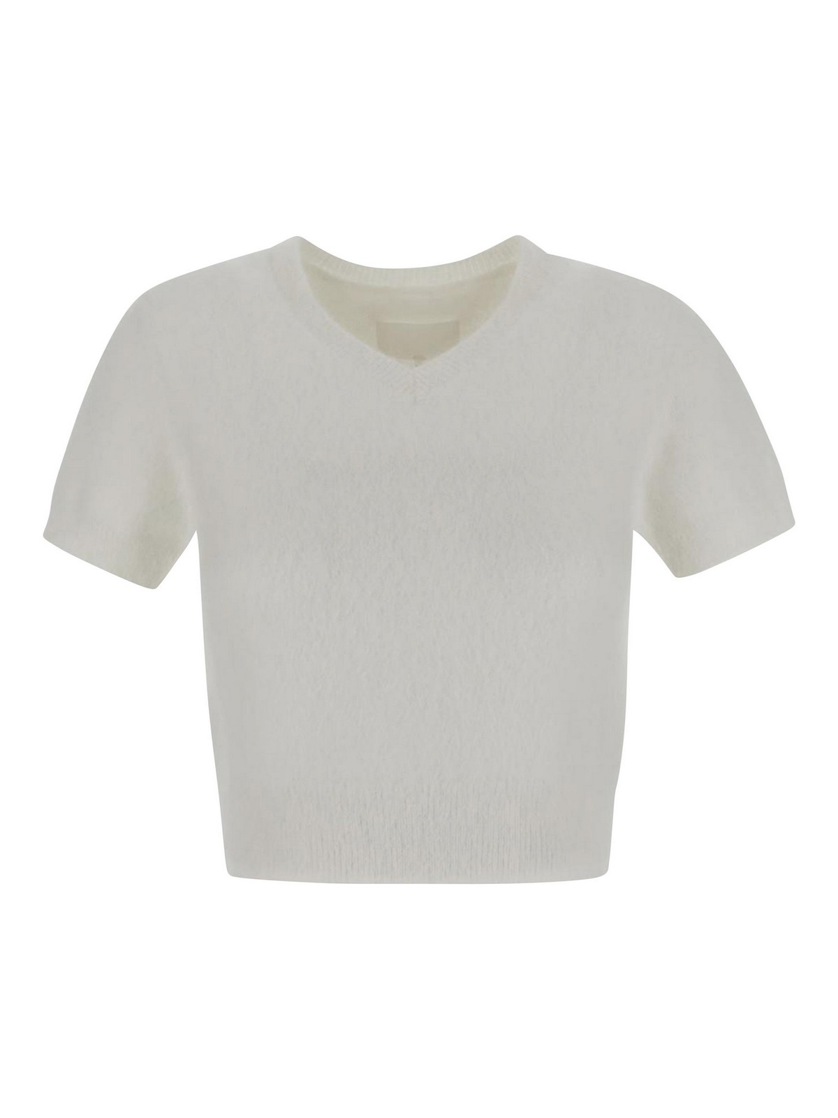 Maison margiela knit cropped top in white blend with short sleeves