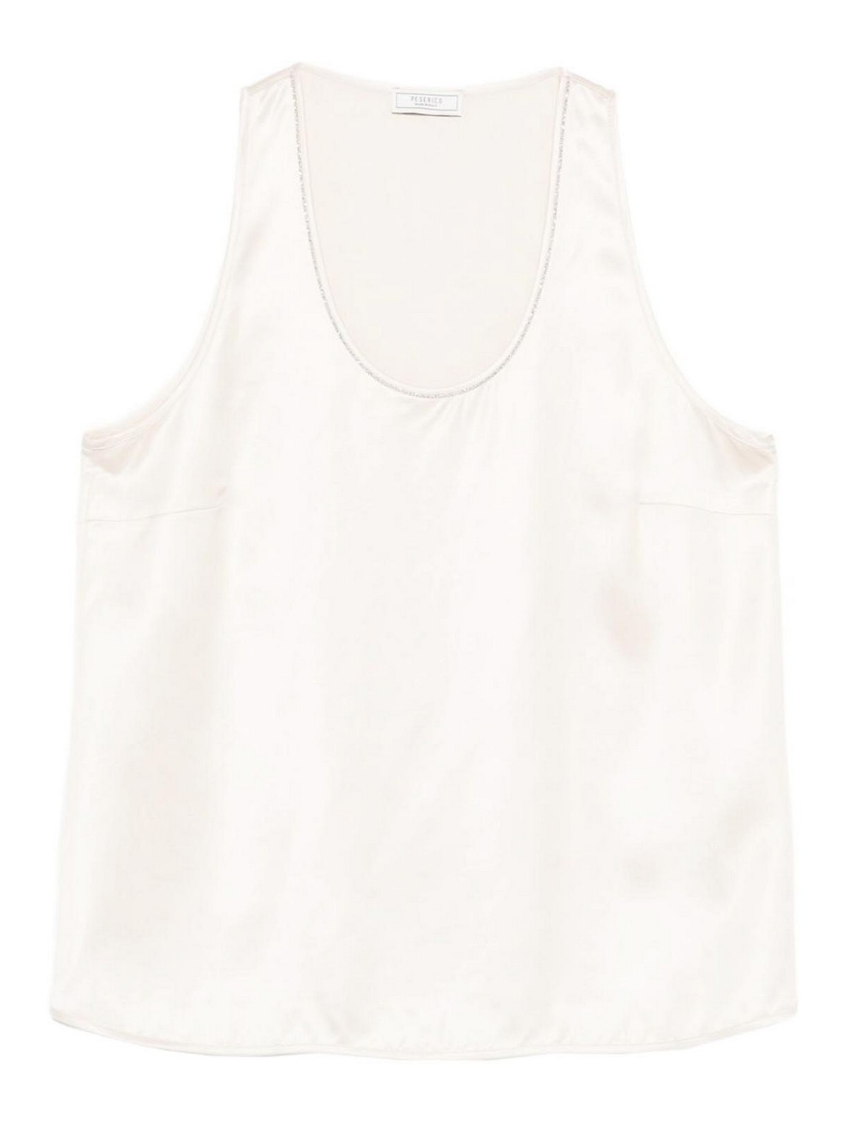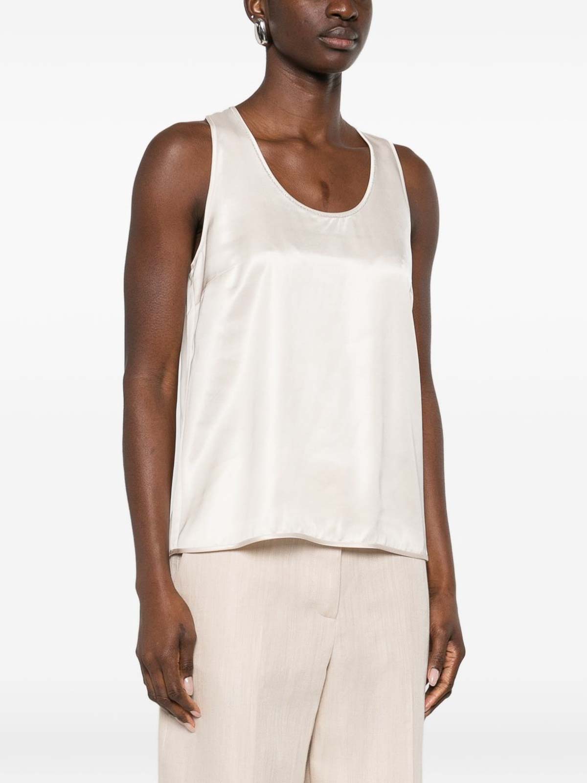Birch beige scoop neck sleeveless tonal stitching straight hem