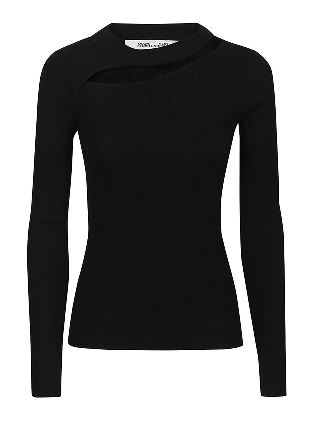 Black wool top from diana von furstenberg with crew neck, long sleeves,cut out on the chest.