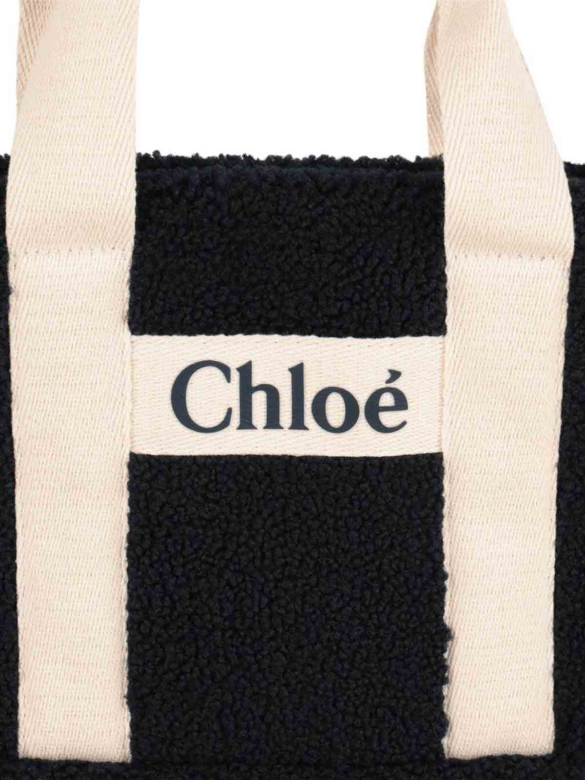 Chlo girls' 'fluffy' logo tote bag in black and white