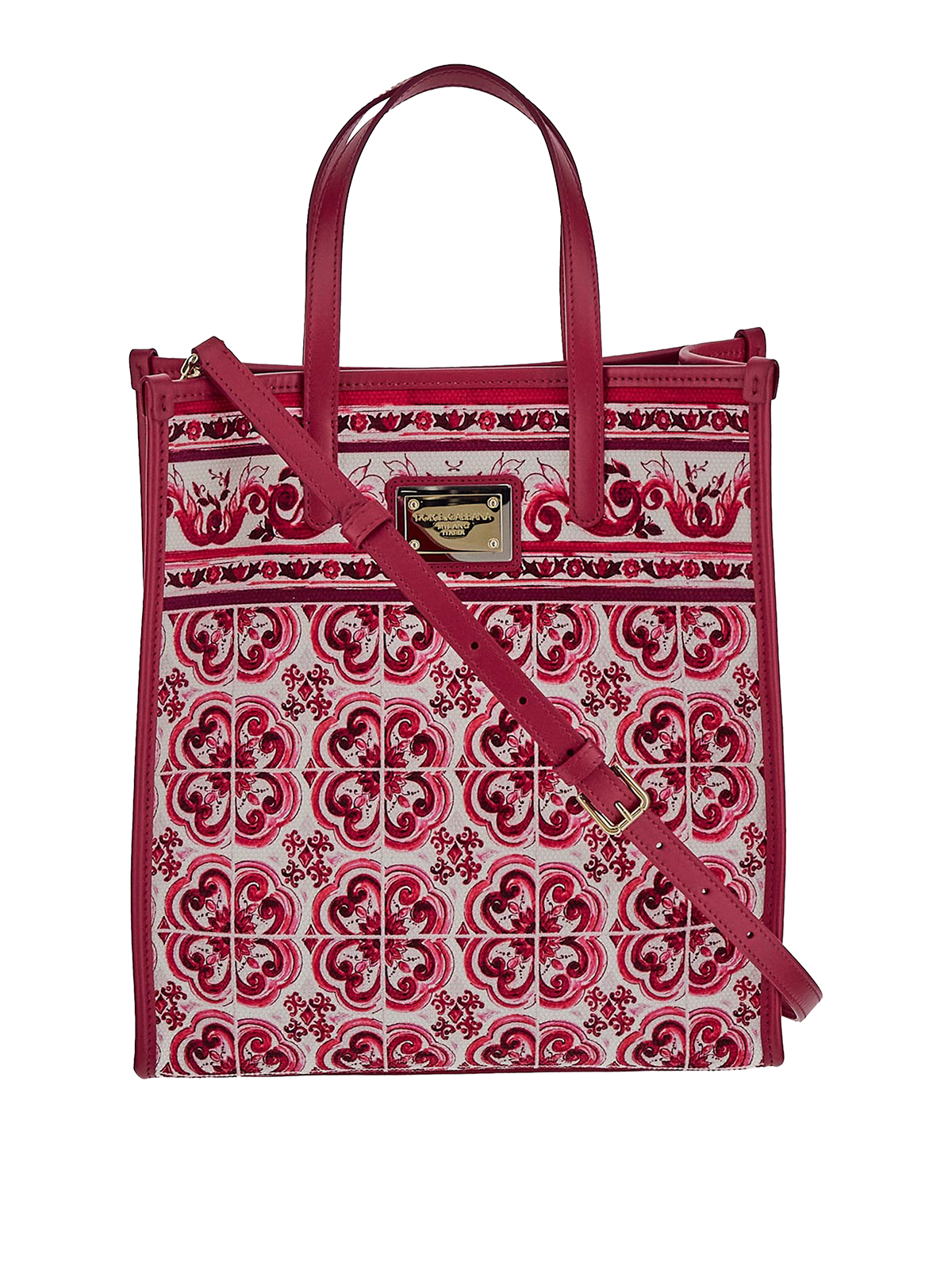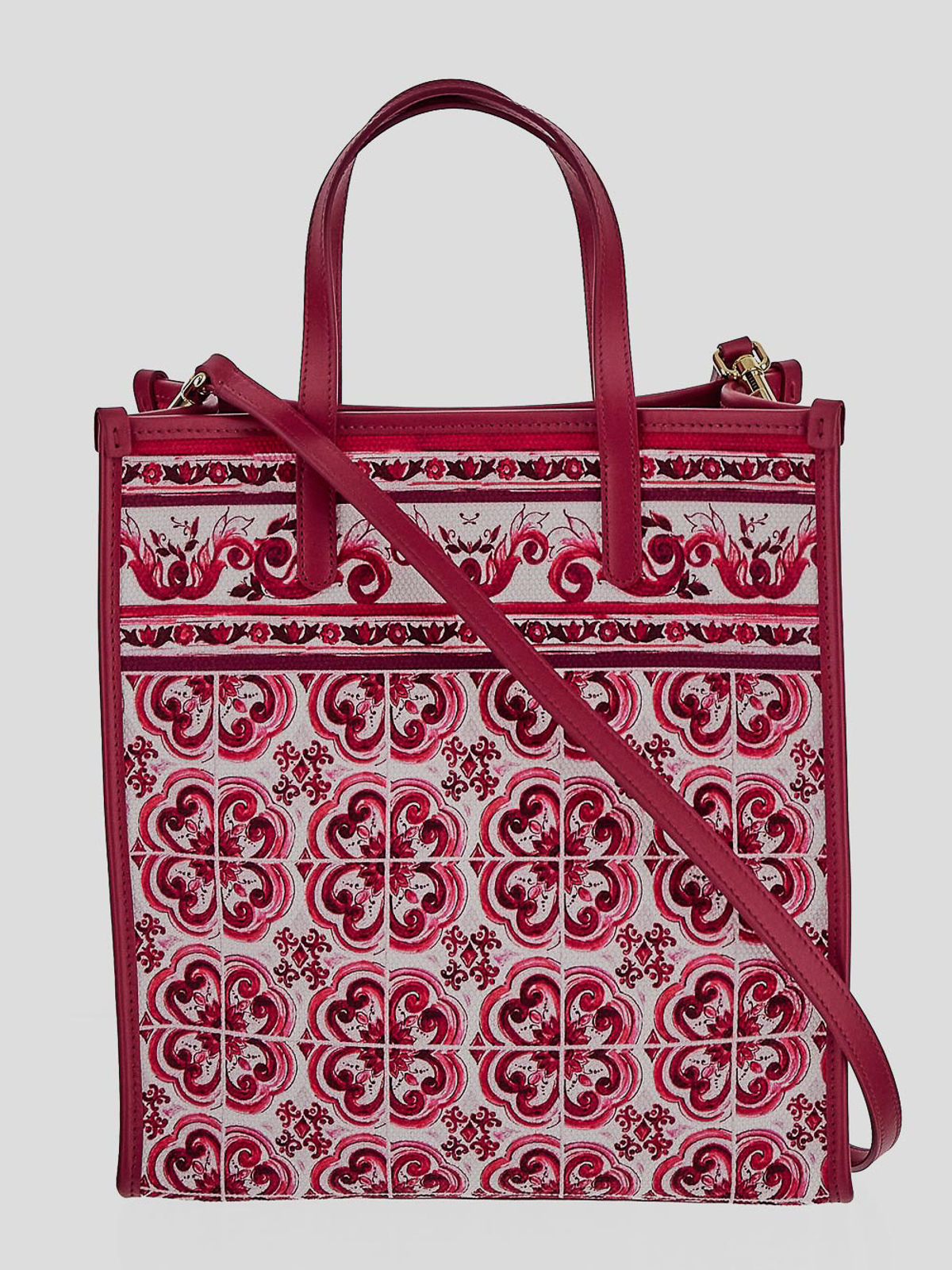 Dolce & Gabbana small shopper bag in white and fuchsia cotton with all-over majolica motif