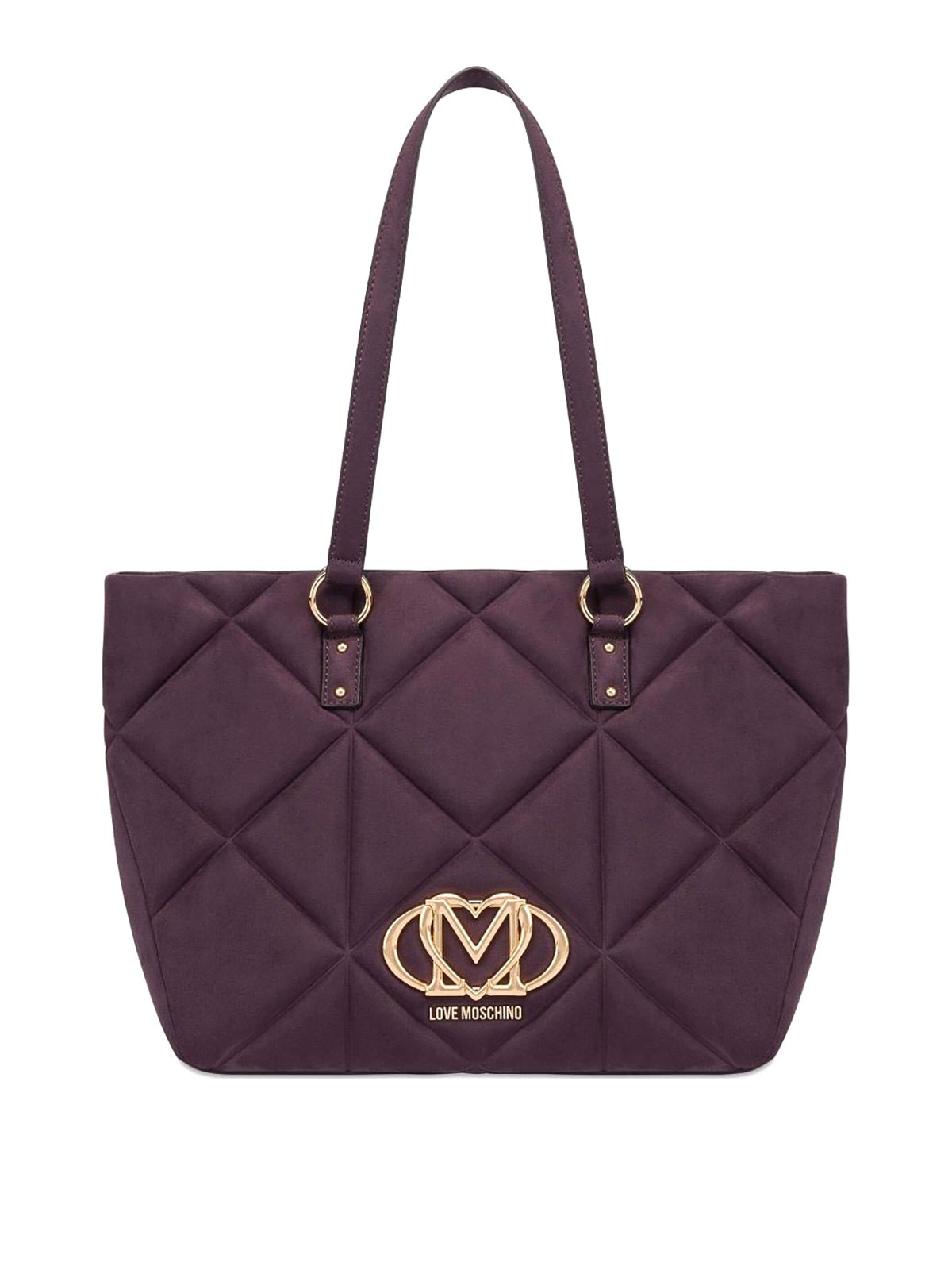 Purple quilted texture top handles logo emblem zip, tone hardware