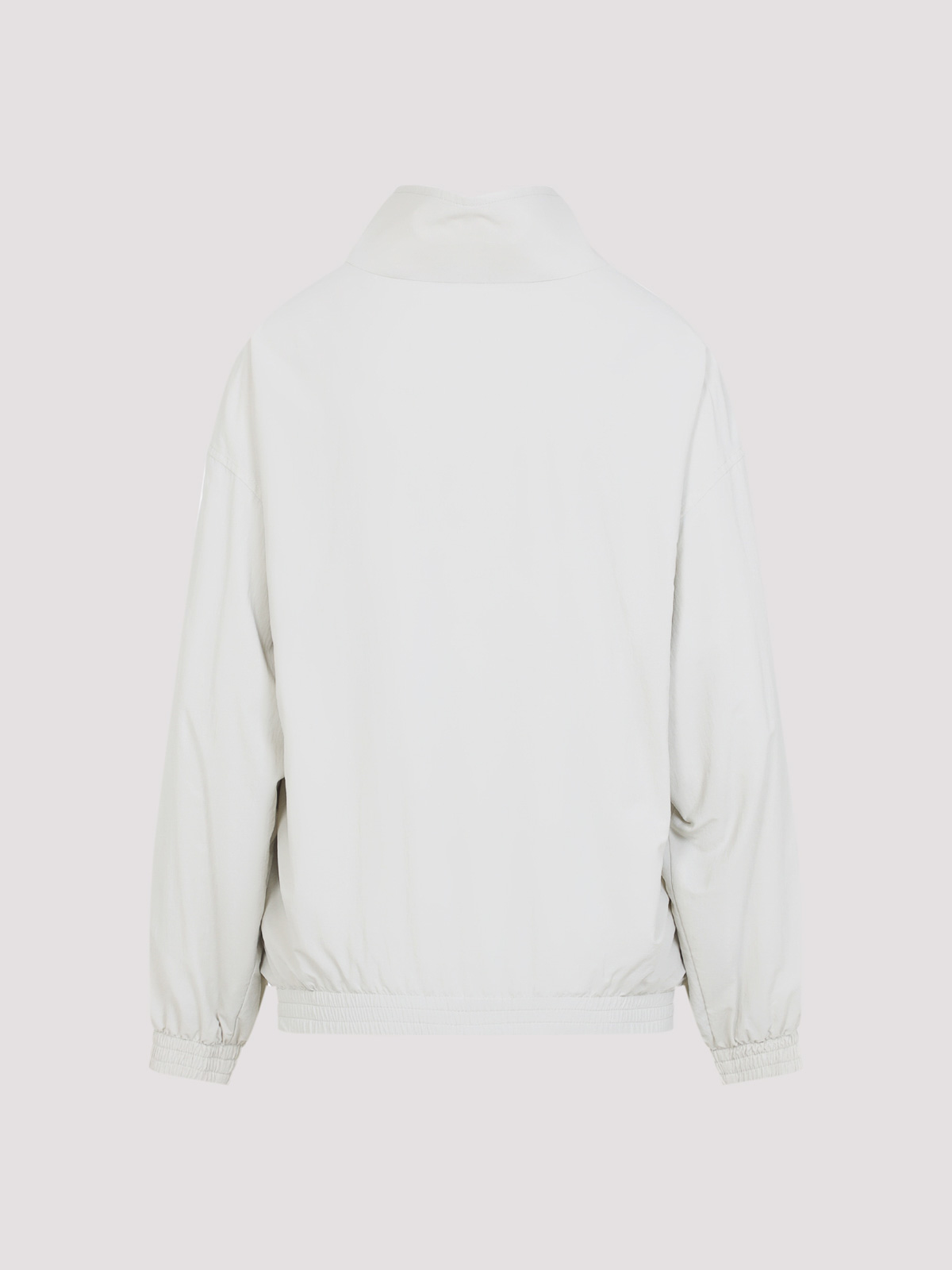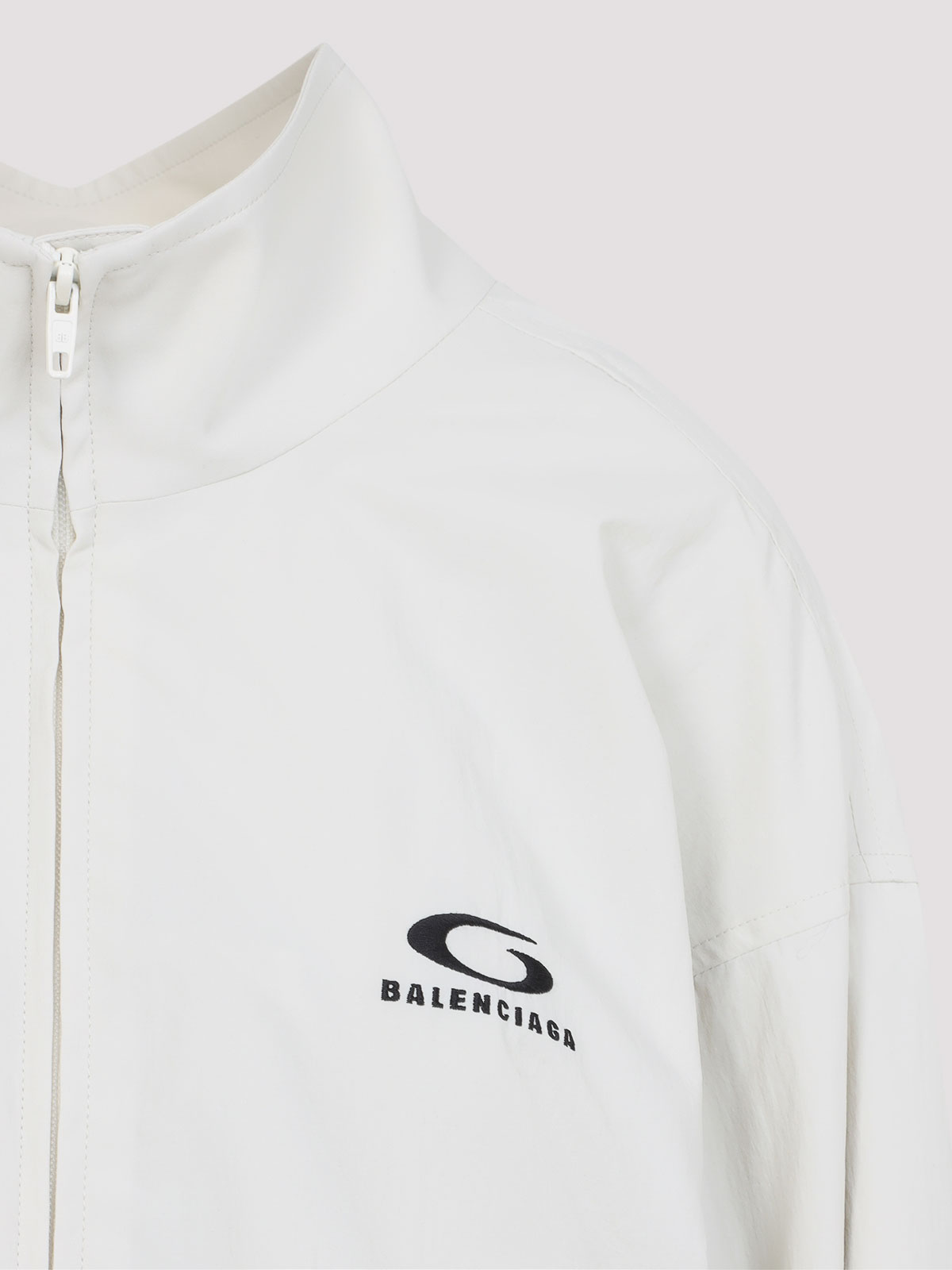 Balenciaga dirty white track jacket. dirty white tesh fabric, stand-up collar, long sleeves, front zip fastening, elastic cuffs and waistband. front zip fastening, contrasting logo embroidery on chest.