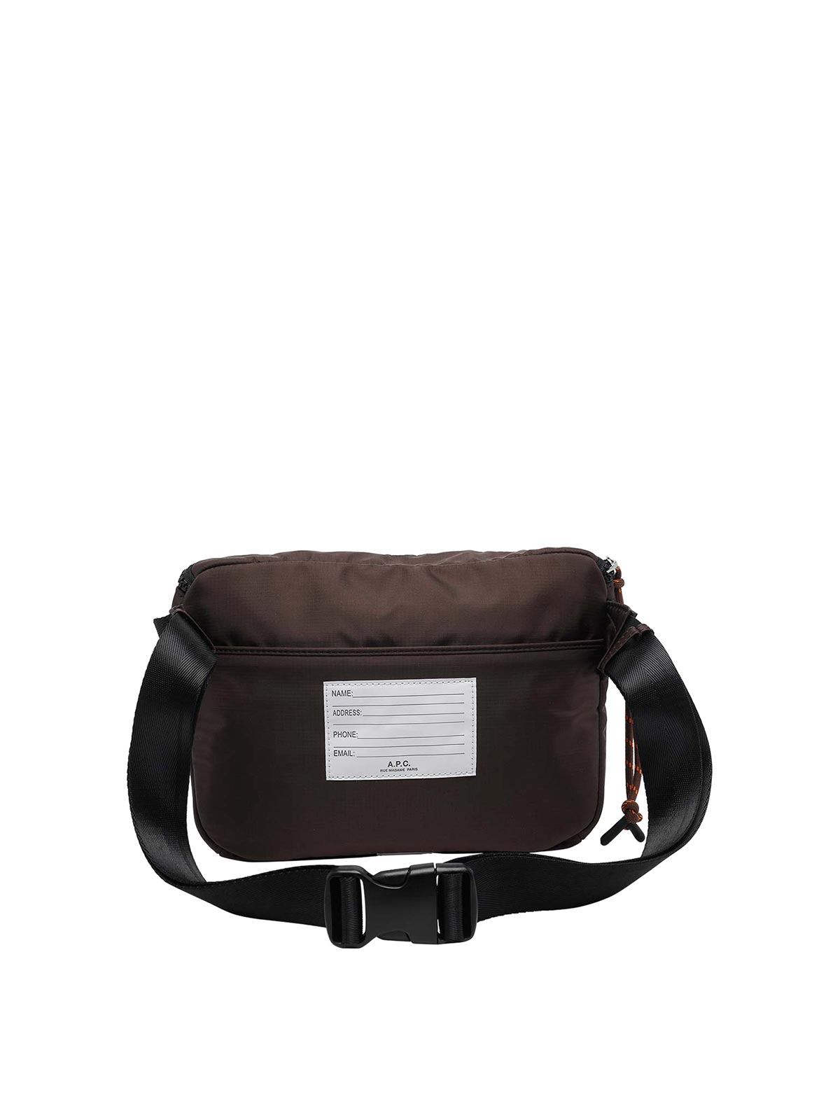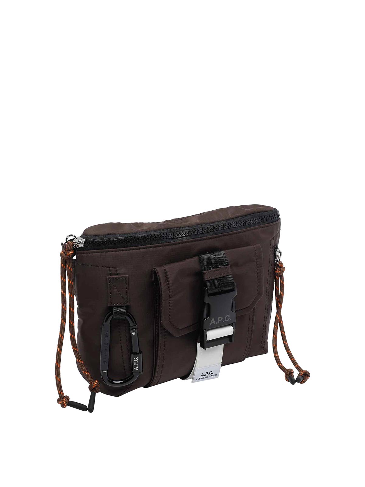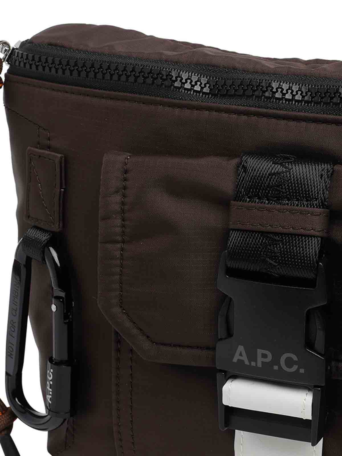 A.p.c. brown trek satchel bag, zip closure, inner open pocket, zipped pocket, external buckle closure, removable strap, carabiner detail