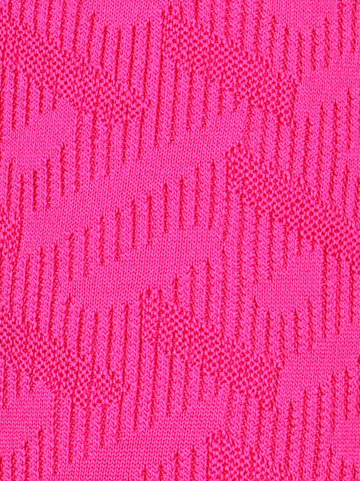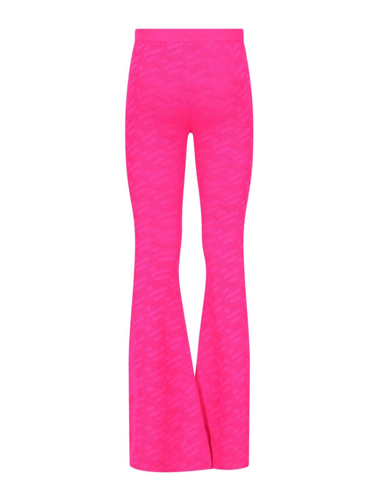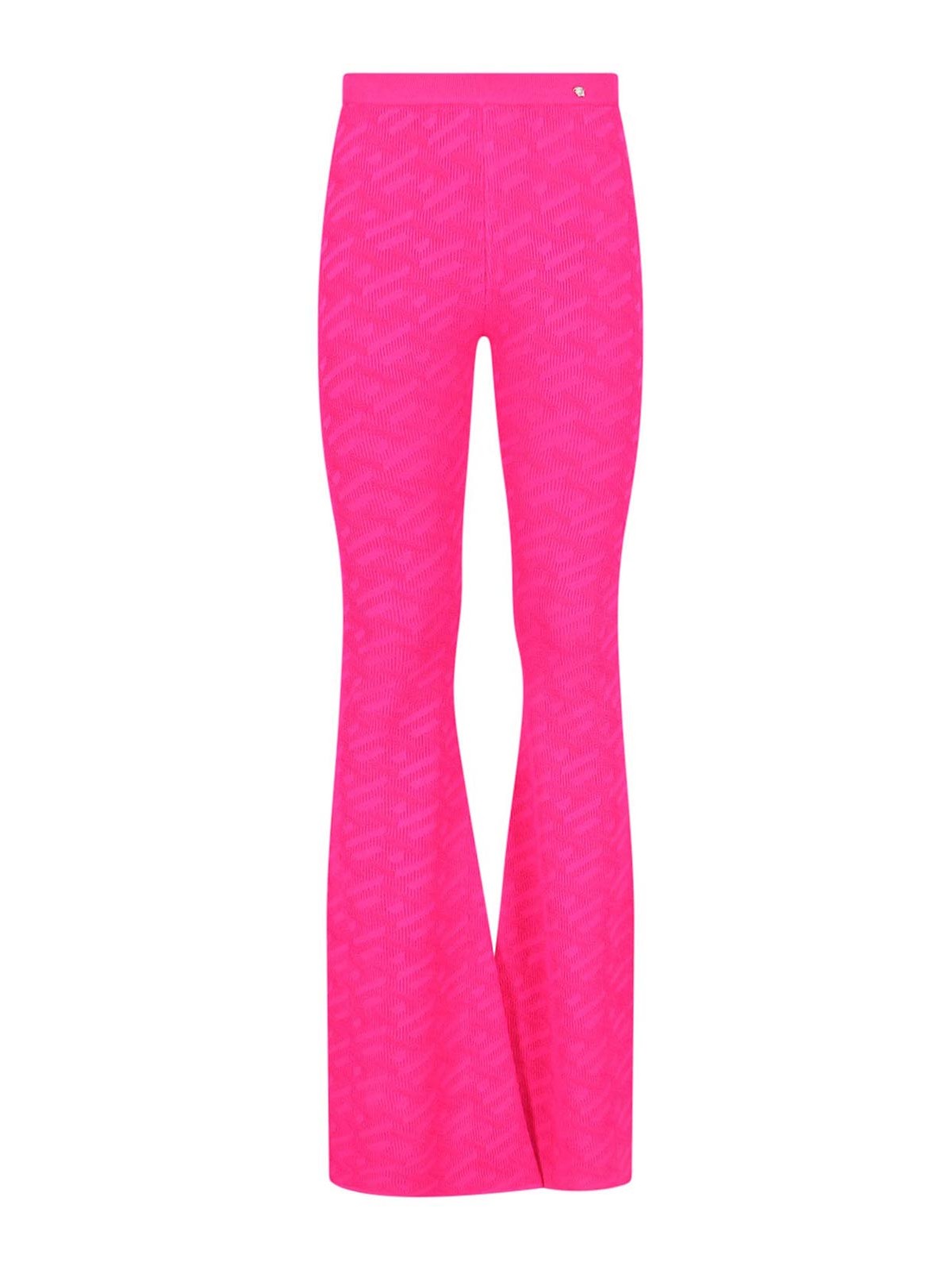 La Greca versace trousers in pink fuchsia jacquard elastic waist golden charm applied logo all-over logo pattern flared leg