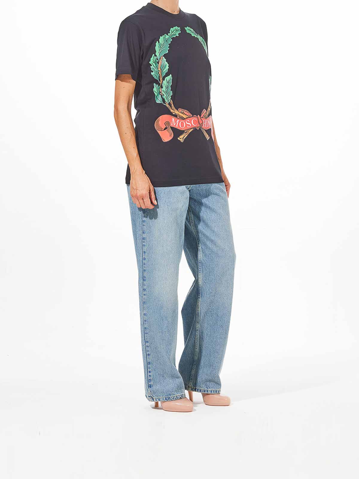T-shirt Black organic t-shirt with maxi printing archive logo Laurel Crown print logo with laurel wreath short sleeves neckline black neckline color