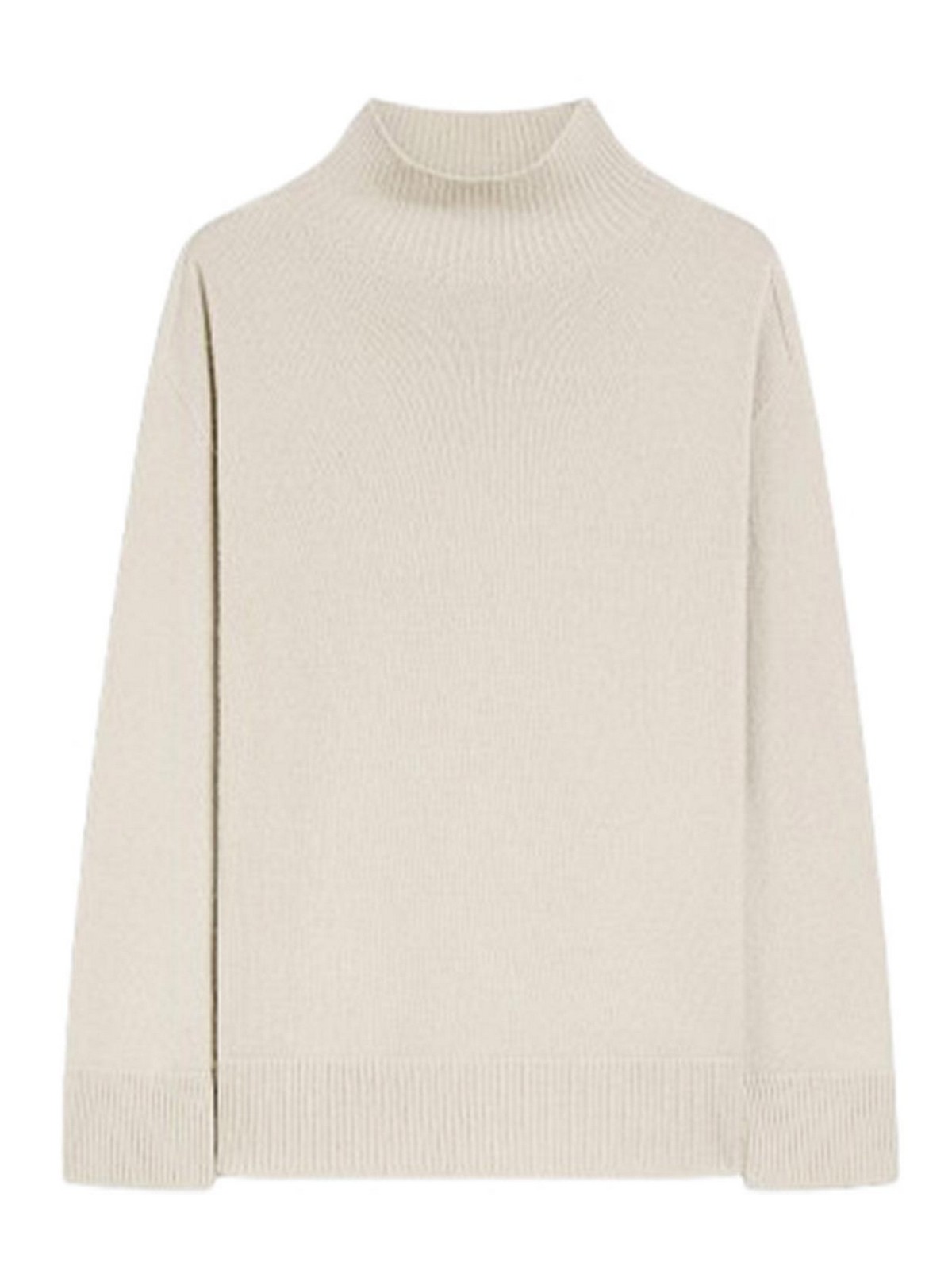 Sand, colored turtleneck sweater pure yarn with long sleeves and dropped shoulders the model is characterized by a seamless construction for an extremely comfortable and comfortable fit finished with ribbed edges and small side slits on the sides