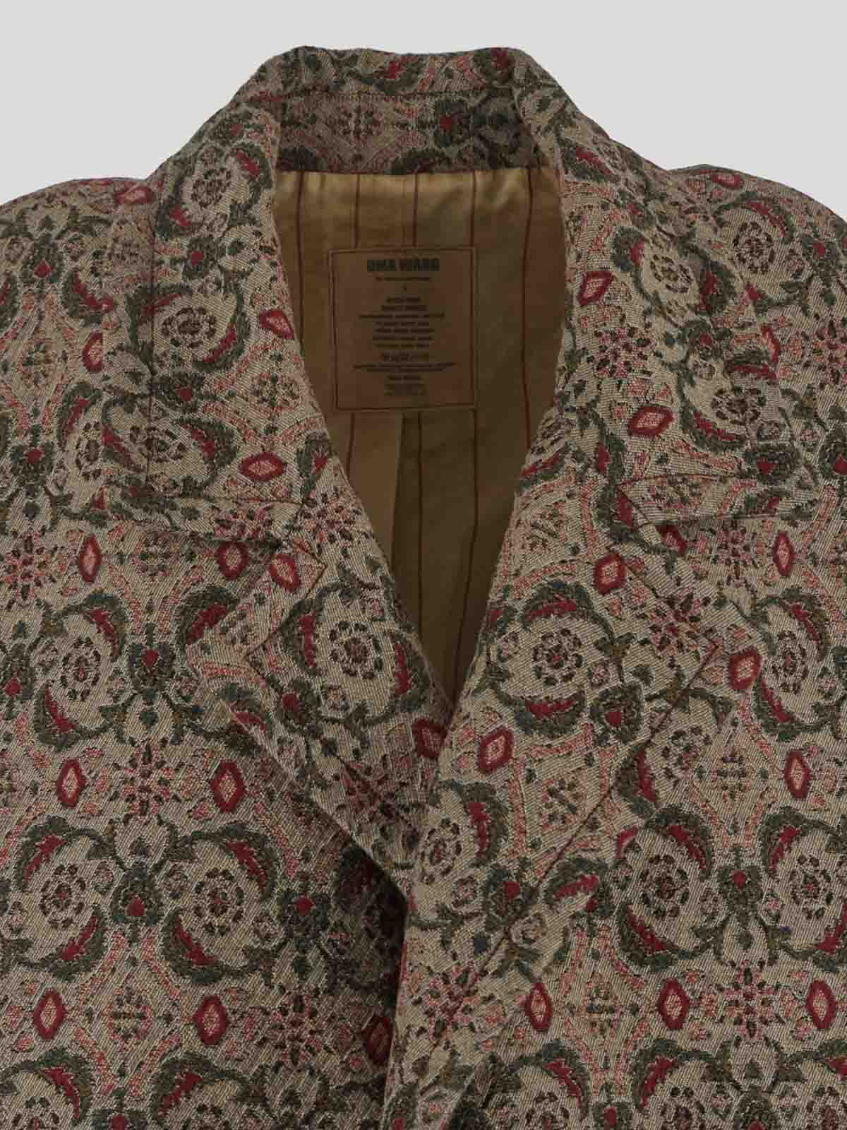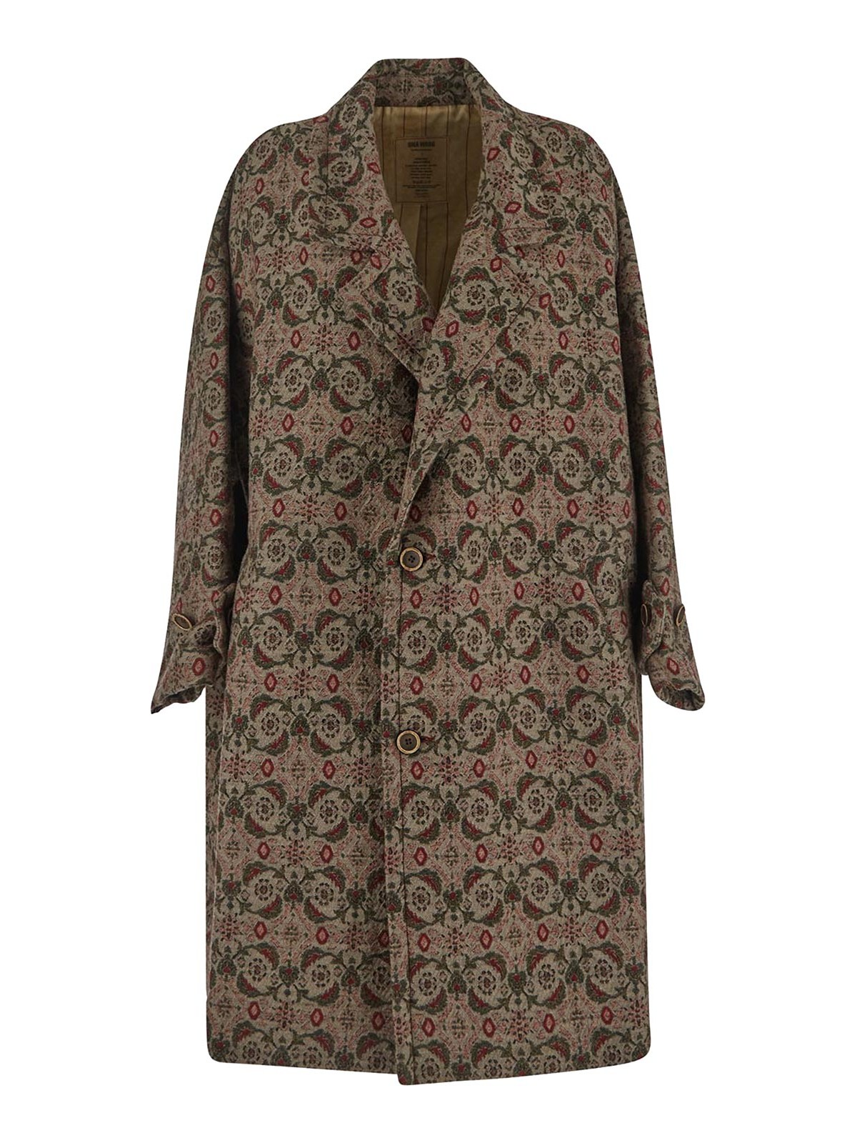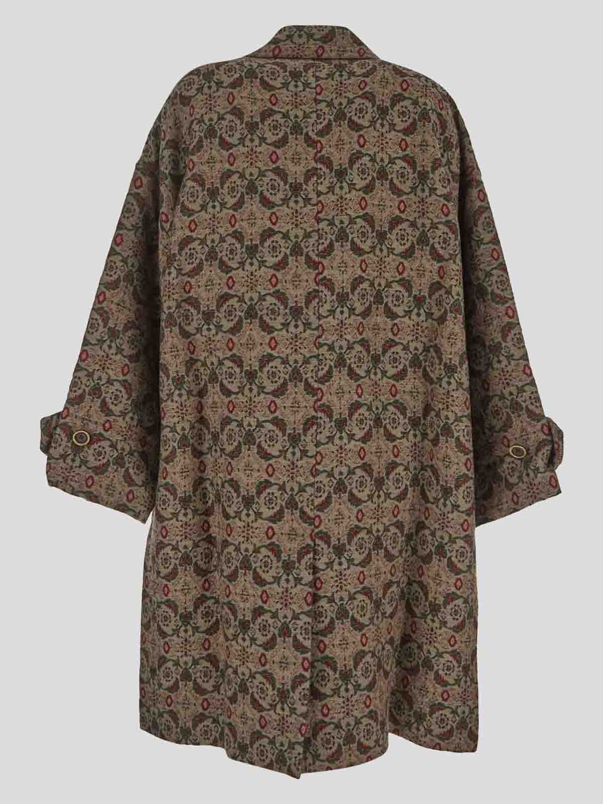 Uma wang coat in tan red and green with floral and geometric motif