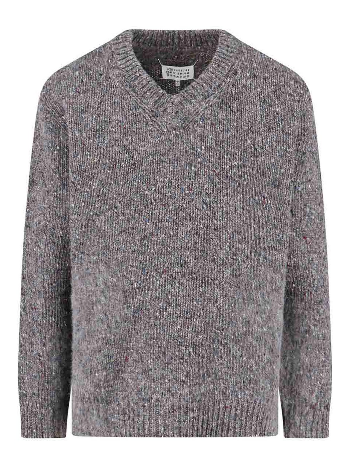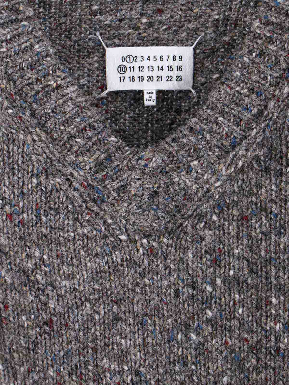 Margiela V Maison Scolle sweater, in gray wool, melange processing, coast finishes, straight hem.