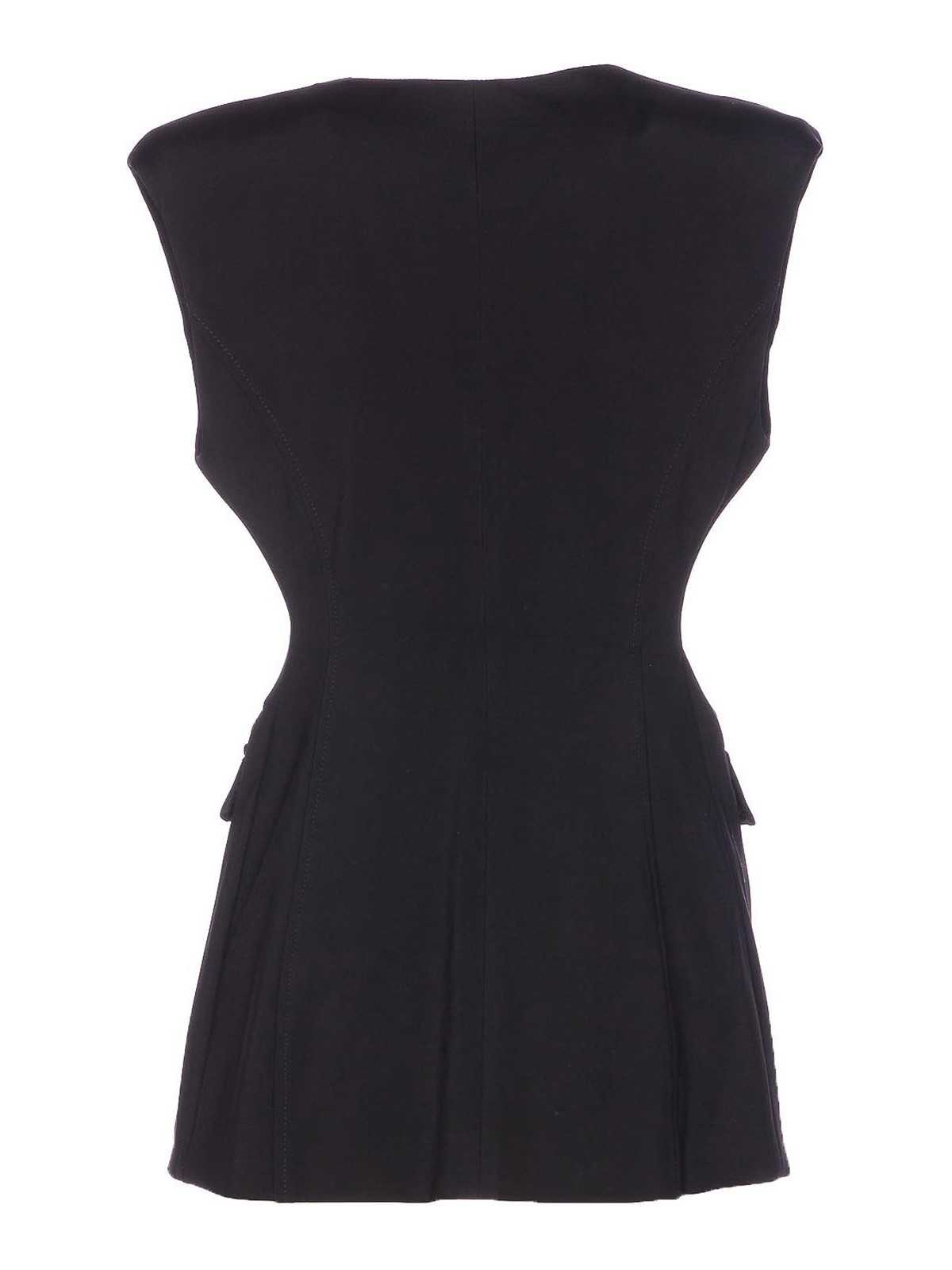 Pinko black gitana vest with frontal zip and buttons closure, v-neck, sleveeles, reinforced shoulder, zip pockets