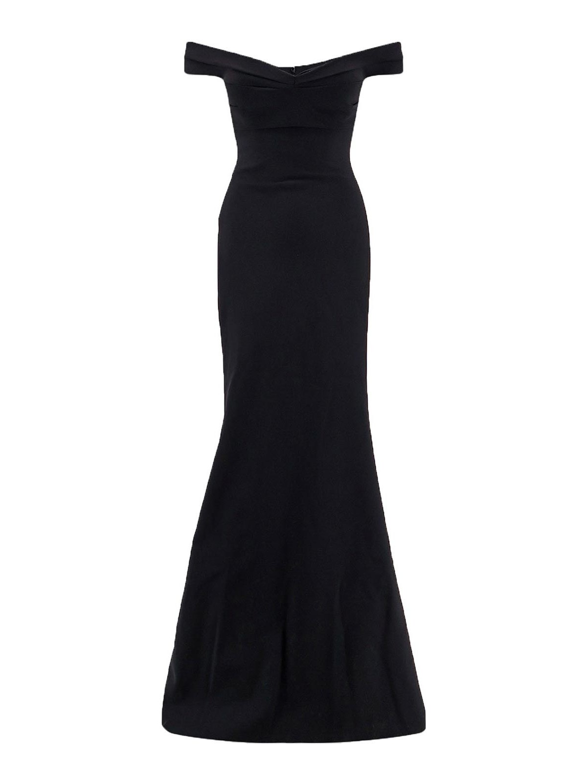 Sweetheart neckline with padded cups, hidden rear zip closure, flared hem, made in Italy, 75% polyamide, 25% elastane