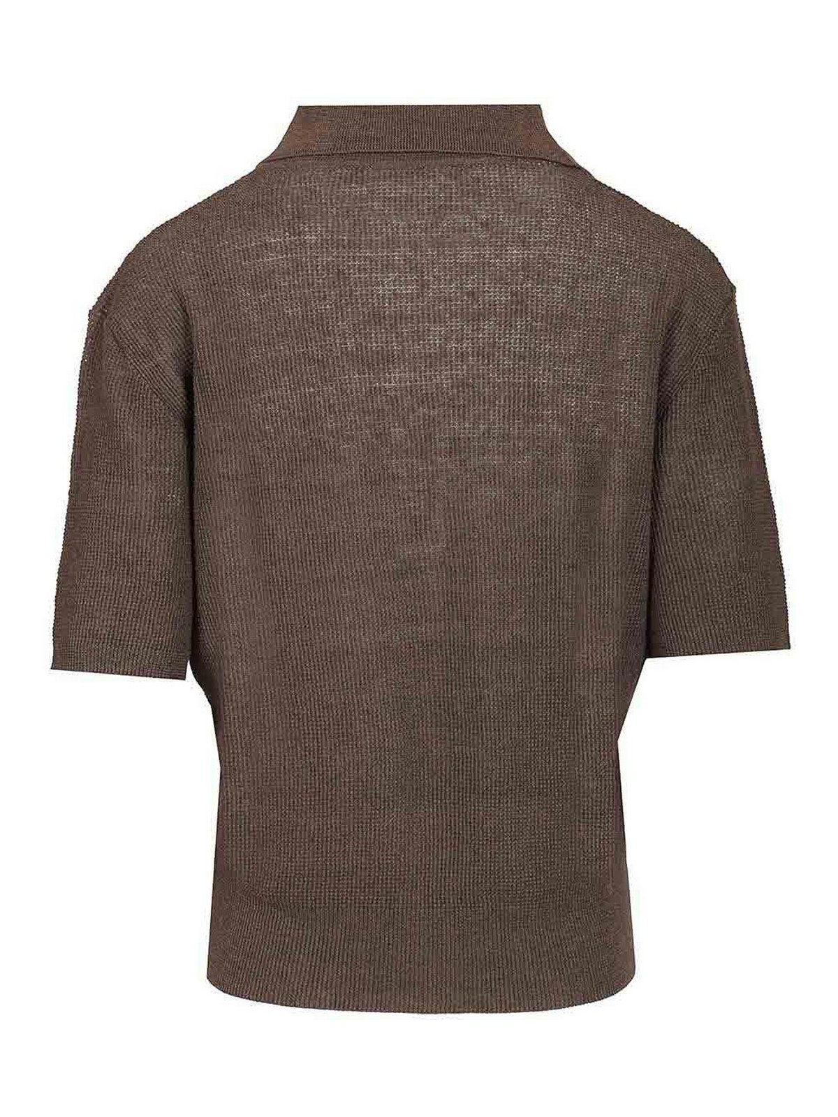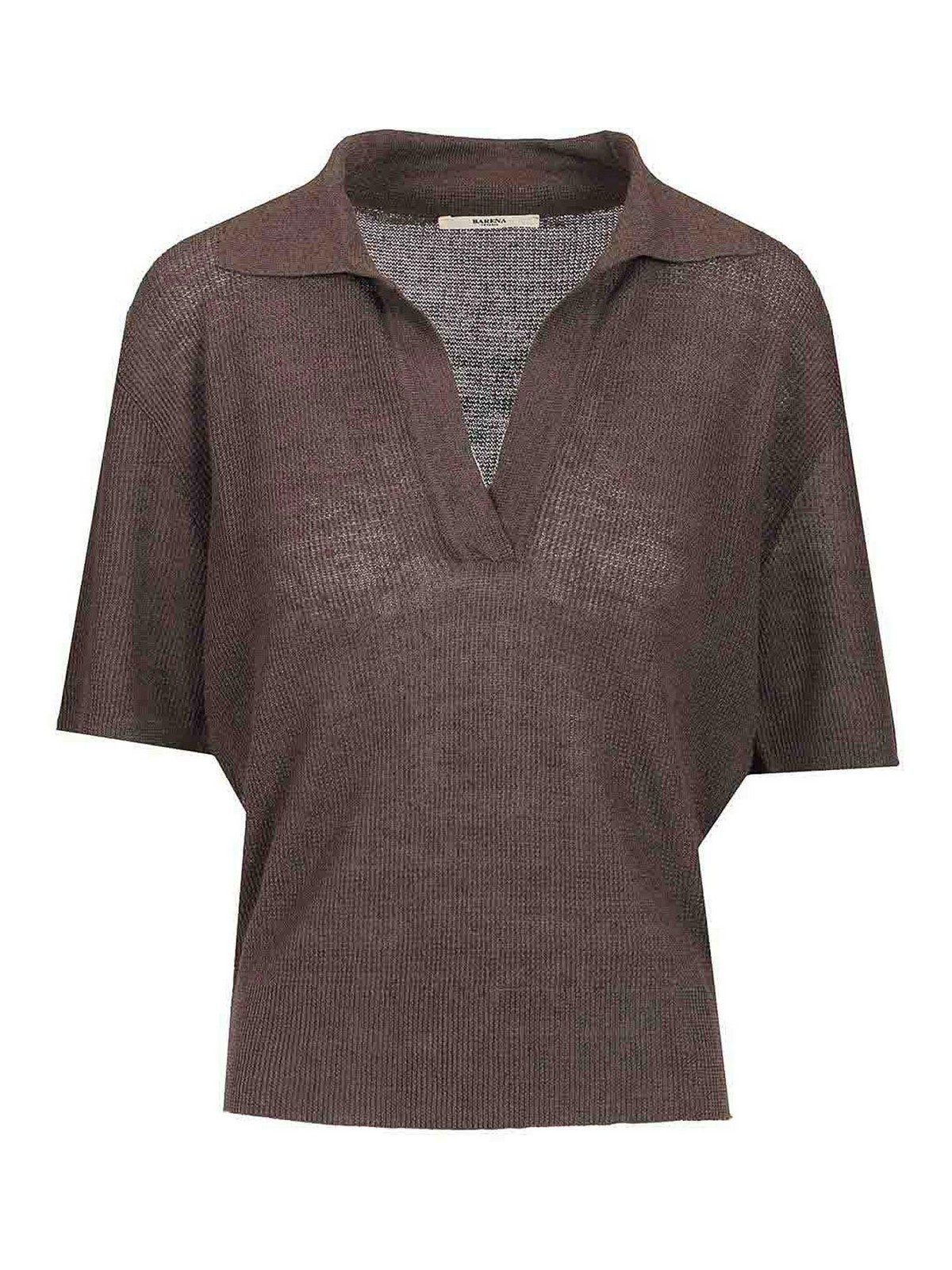 vibia risada sweater in lightweight and knitted by barena with a relaxed fit cropped length short sleeves polo, style collar and v, neck ribbed hem