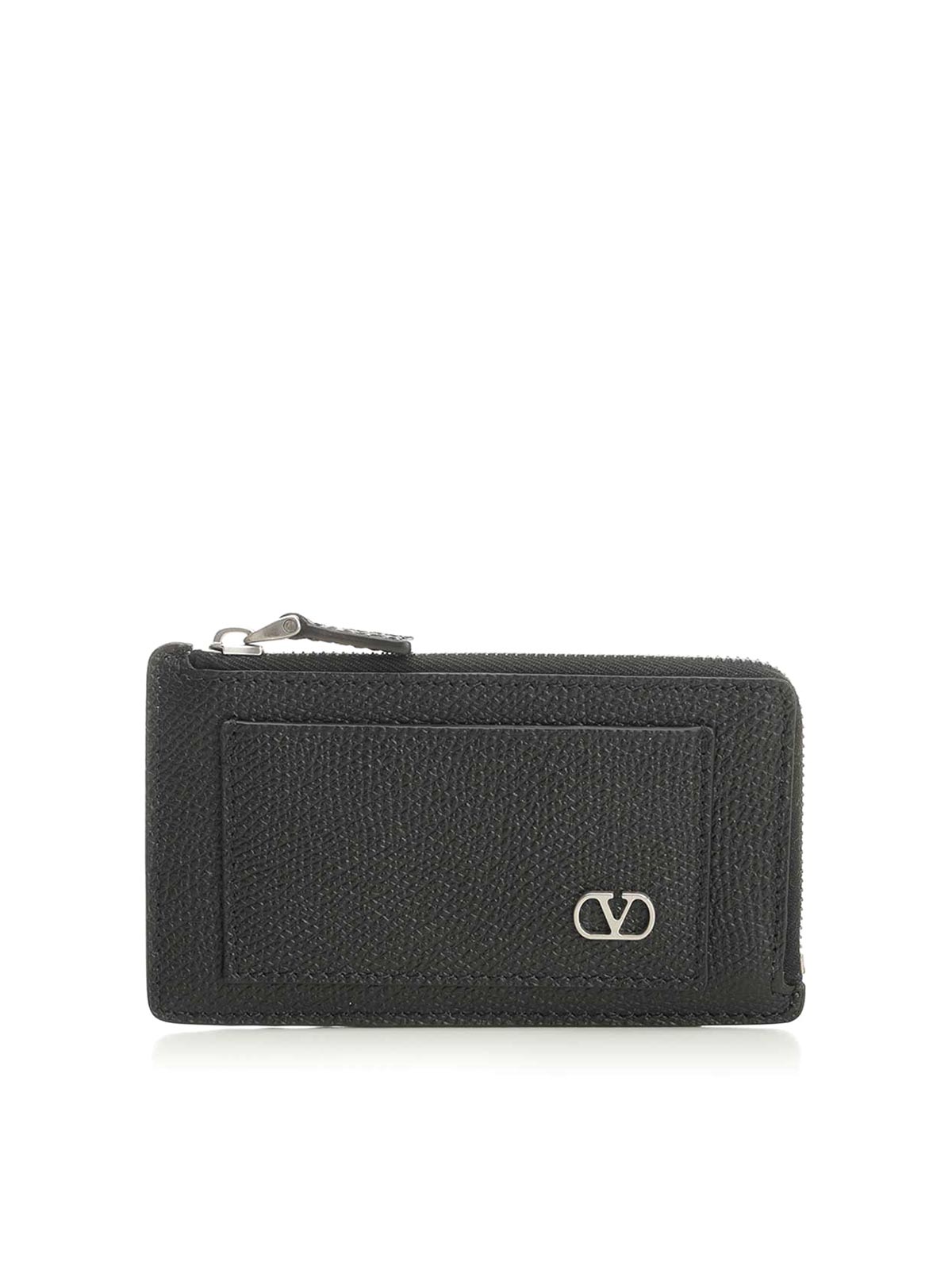VALENTINO GARAVANI: wallets & purses - Vlogo Leather Zip Around Card Holder