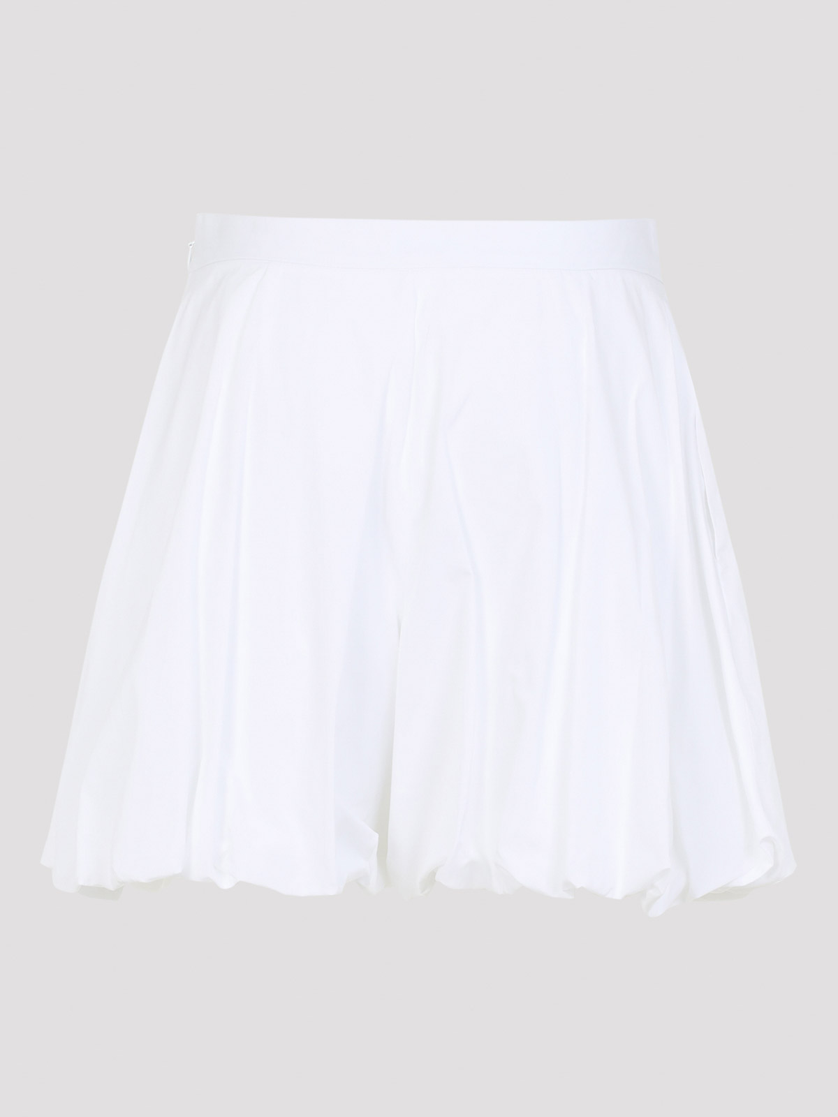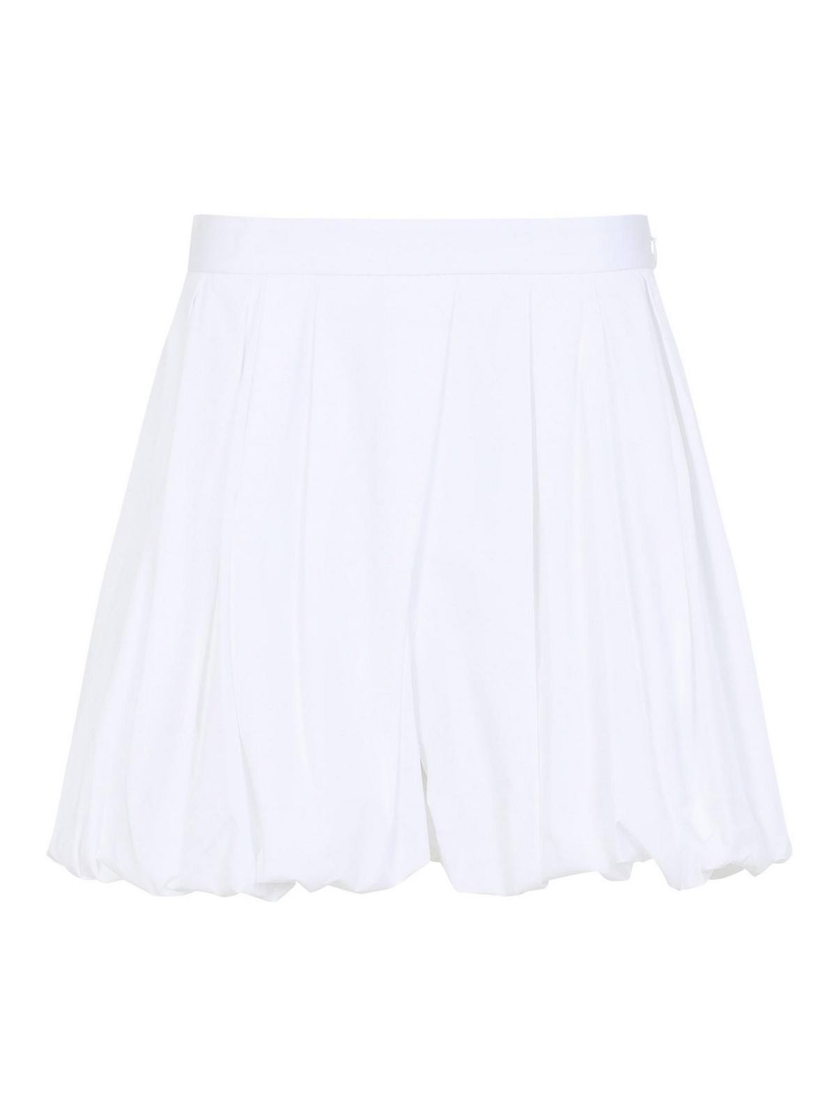 Jil sander voluminous white cotton bermuda. balloon short pants crafted from white cotton, featuring a high waist, side pockets, and a concealed zip fastening on the side.