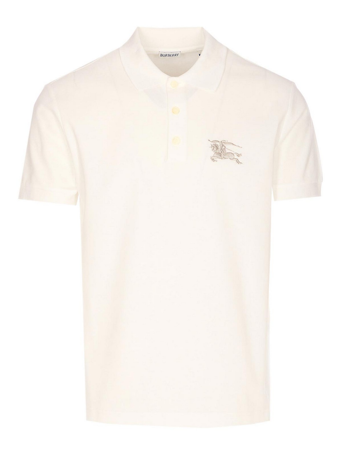 Burberry white polo, regular collar, buttons closure on the front, embroidered on the front, short slevees