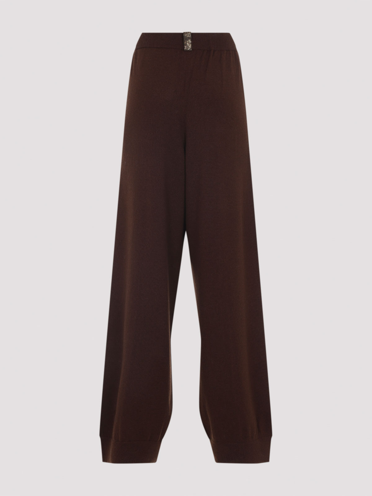 Fabiana filippi brown wide leg pants crafted from brown and ribbed waistband at the back central topstitching on the ribbed cuffs