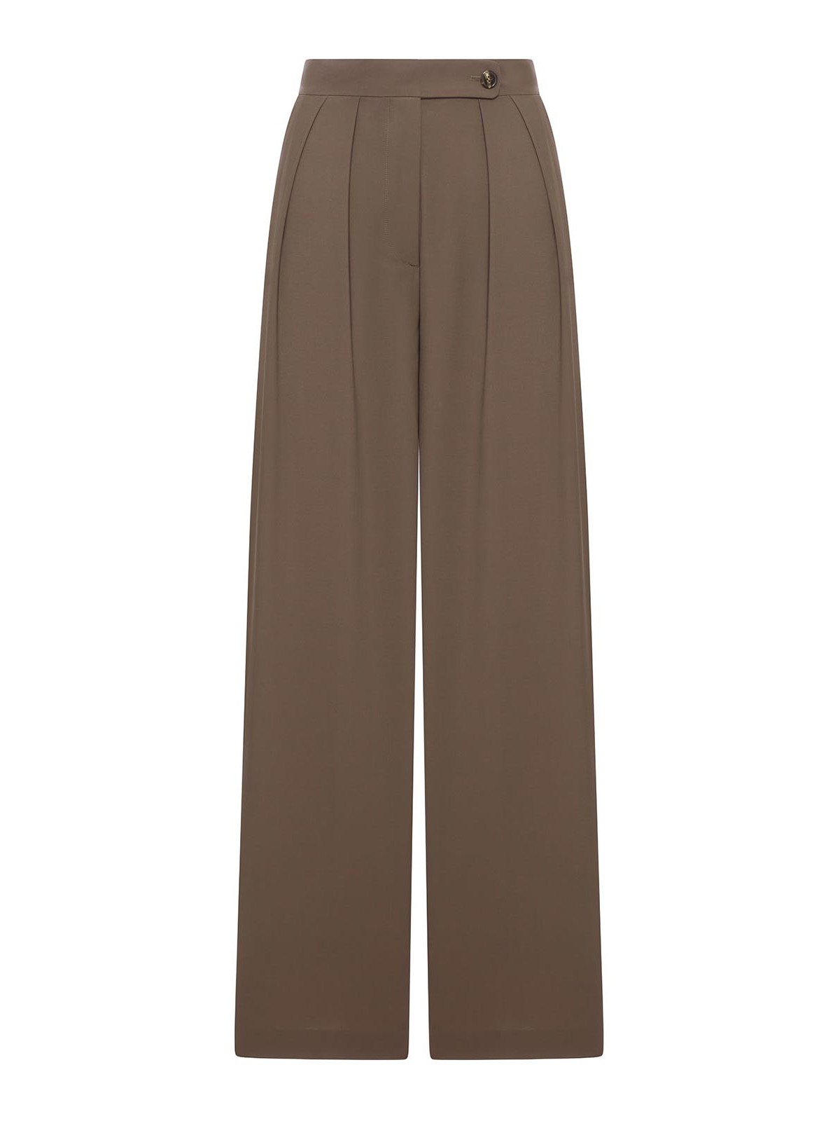 Wide, leg pleated trousers, blend, - low rise, pleated, wide leg, side slit pockets, button and zip, color taupe