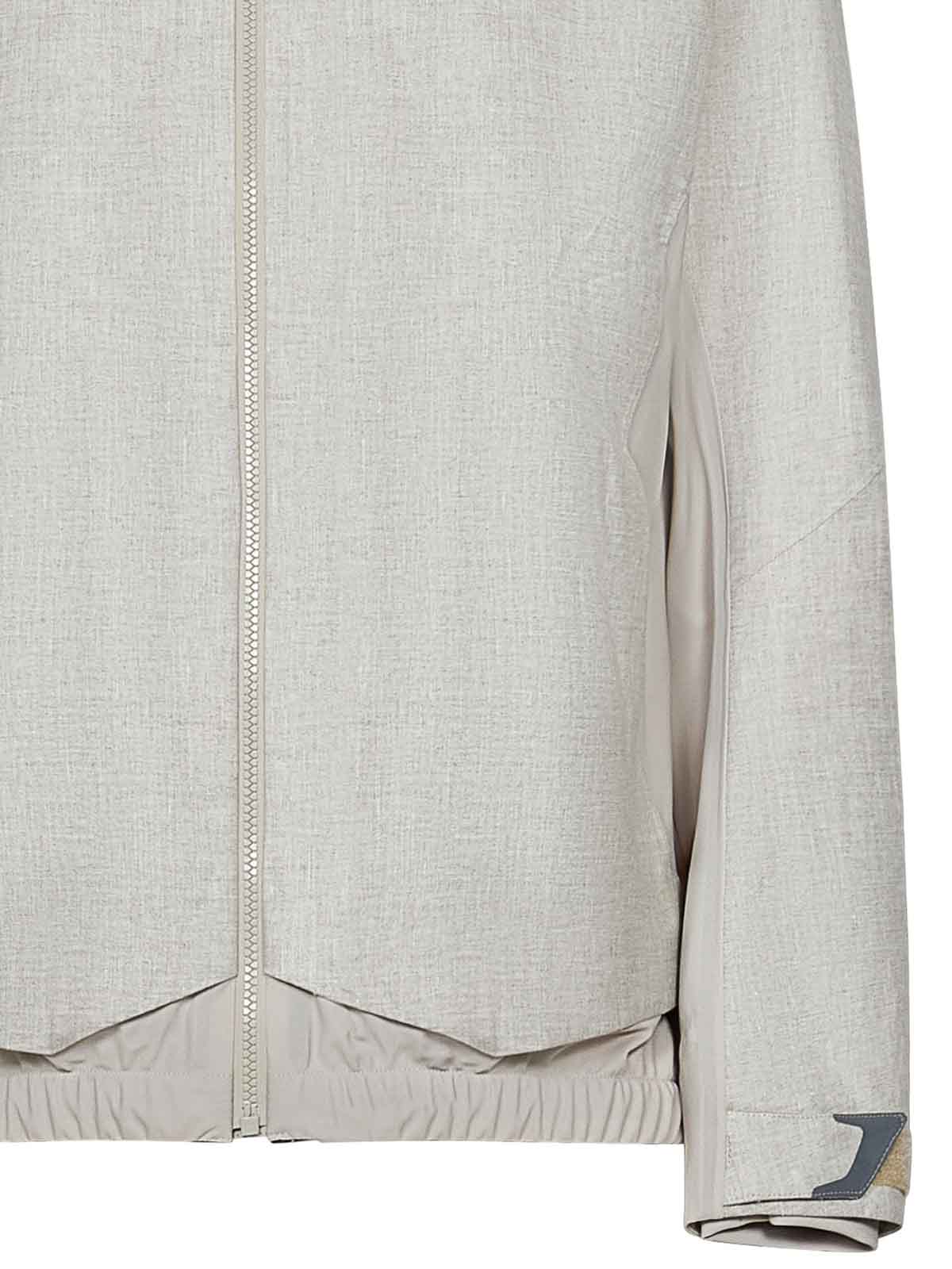 Weatherproof zip turtleneck elasticated bottom wrists closed with velcro strap side and pockets with zip back pocket with contrasting logo print windproof cord on the back of the neck exterior /