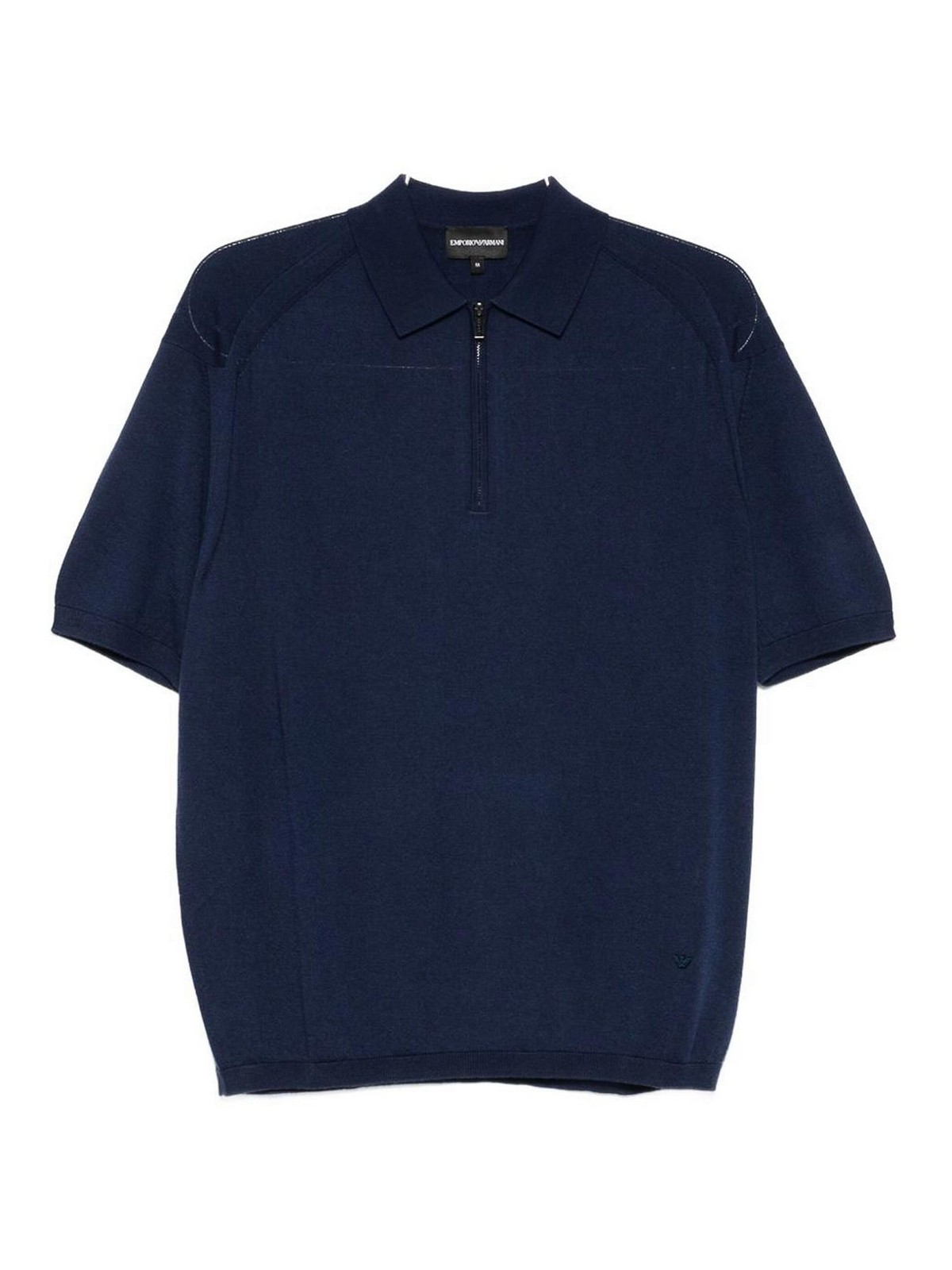 Navy blue short sleeves zip detailing knitted construction straight hem polo collar