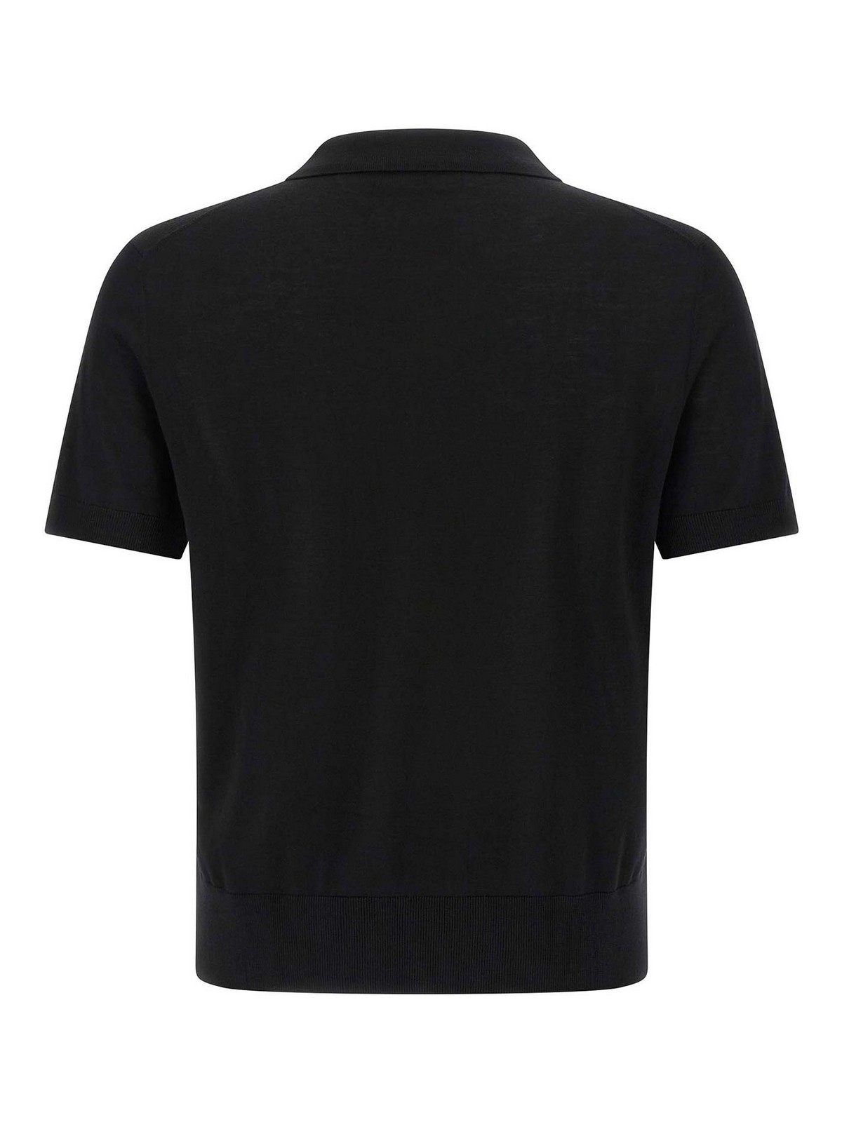 Light wool polo shirt with tone-on-tone logo embroidery on the front, collar and buttons, short sleeves with cuffs.