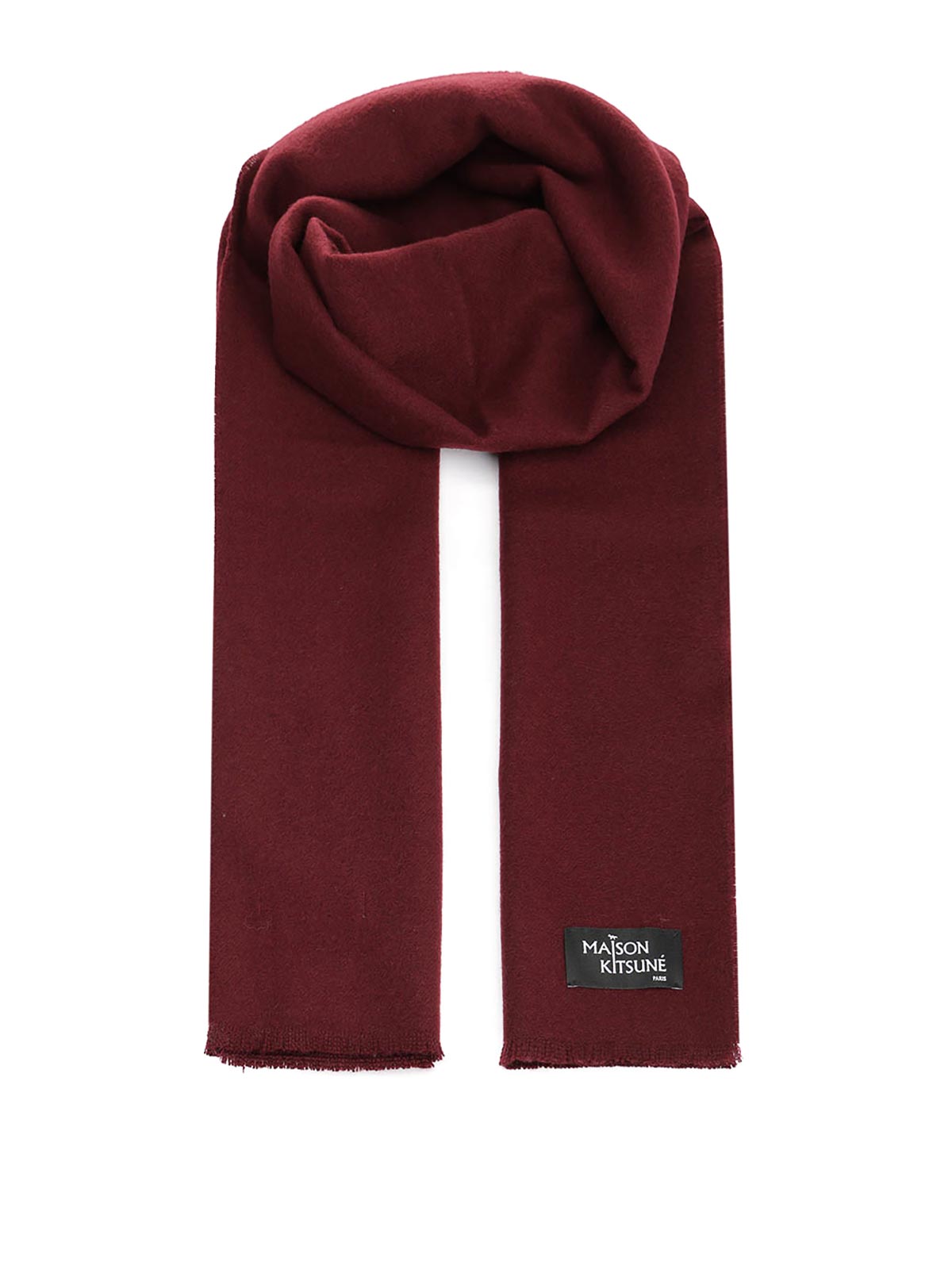 Wool scarf with fringes maison kitsun label