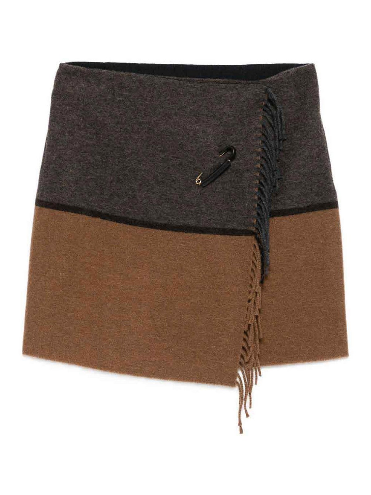 Brown blend fringed hem safety, pin two, tone design wraparound style